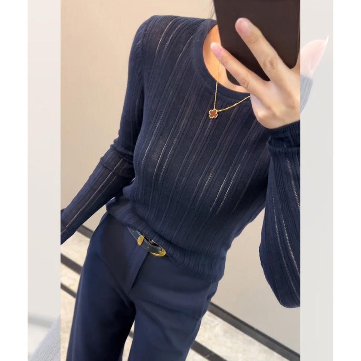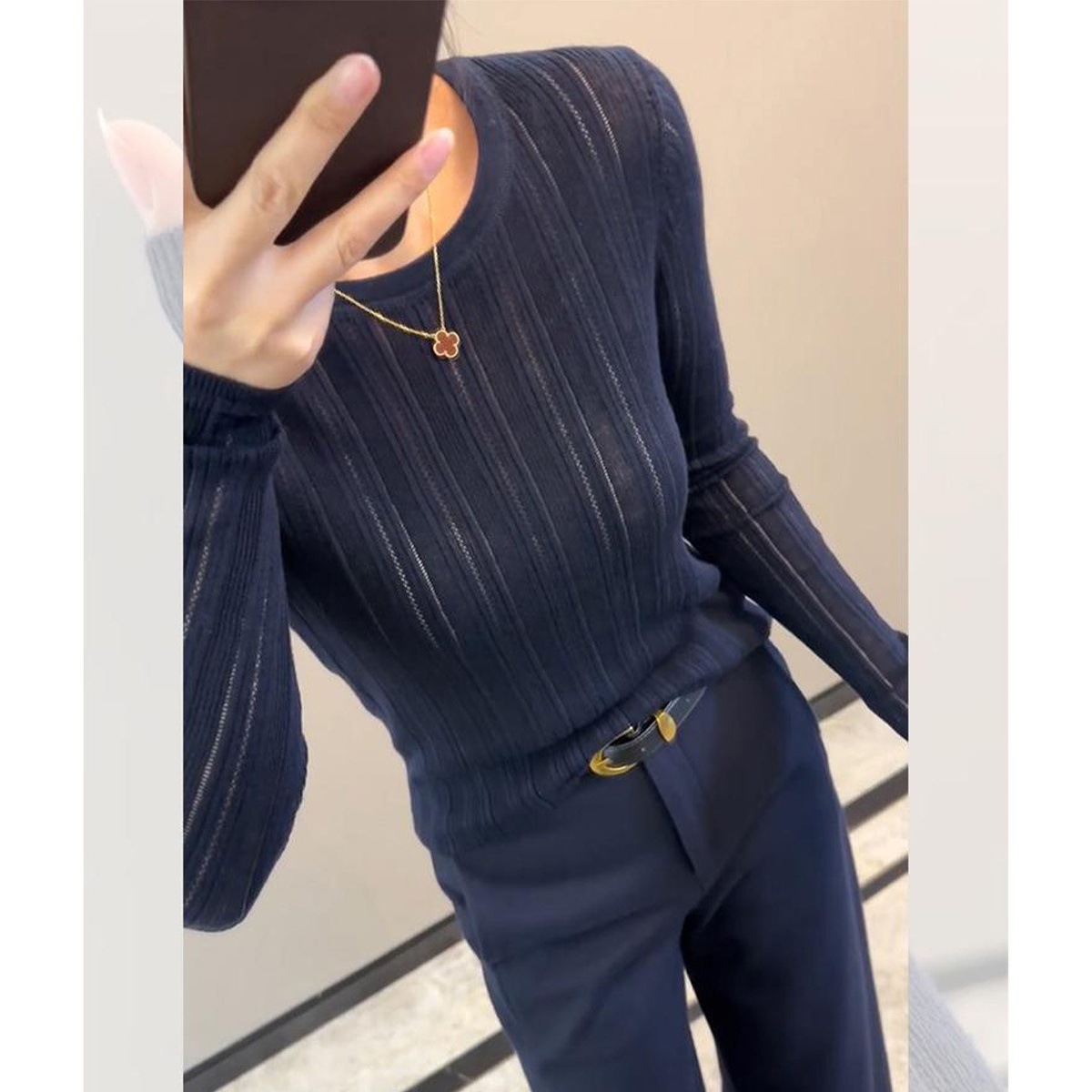 Unique and beautiful inner purple hollow sweater, bottom sweater women's clothing autumn and winter knitted sweater, foreign style and noble clothes