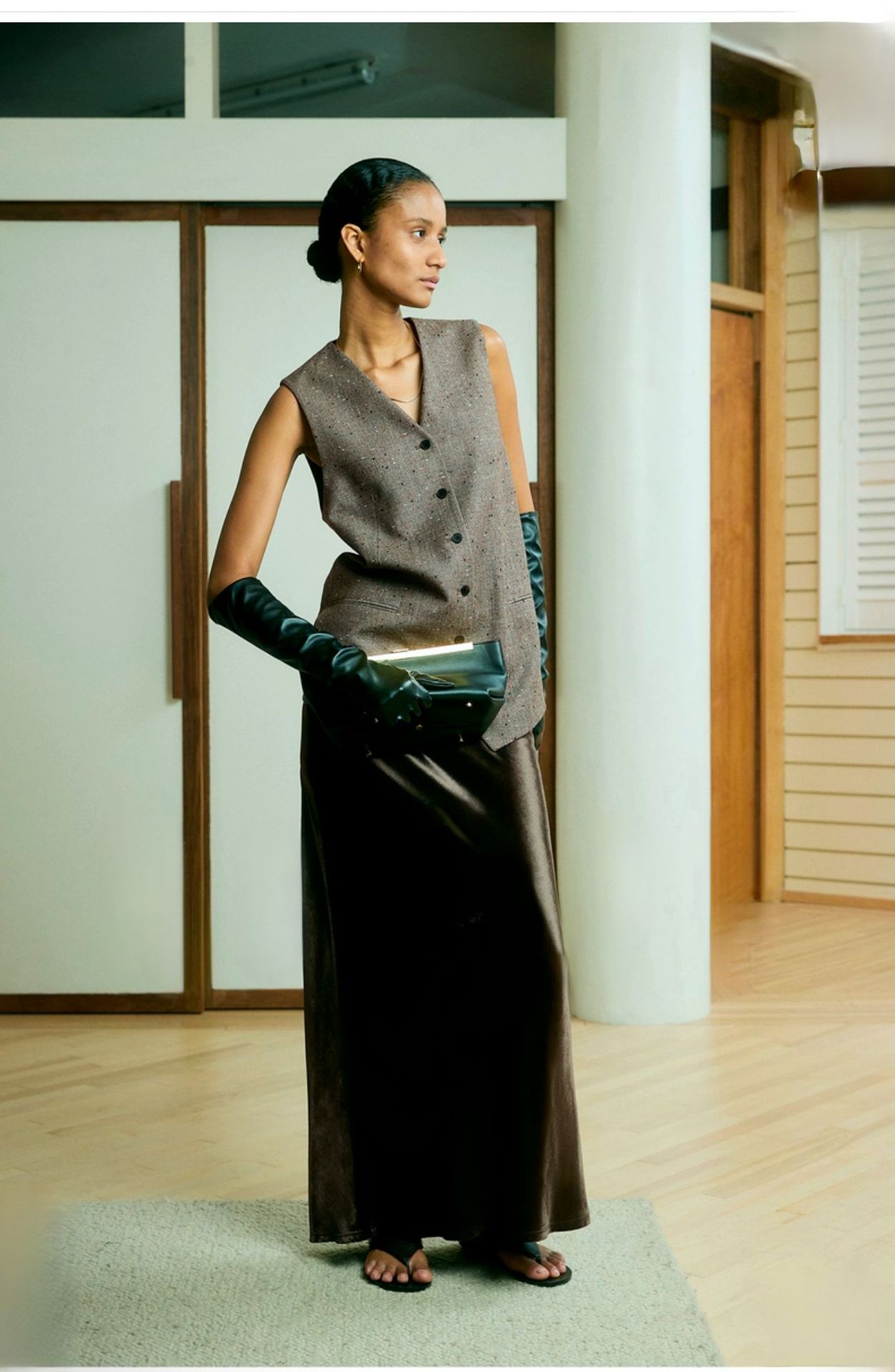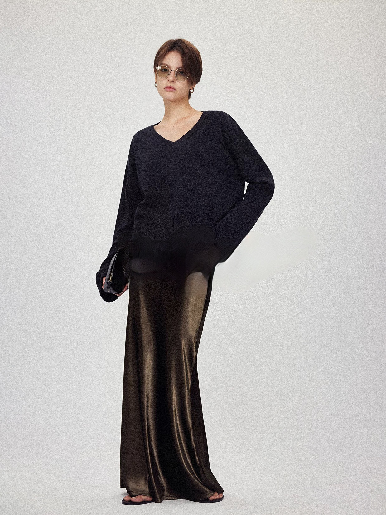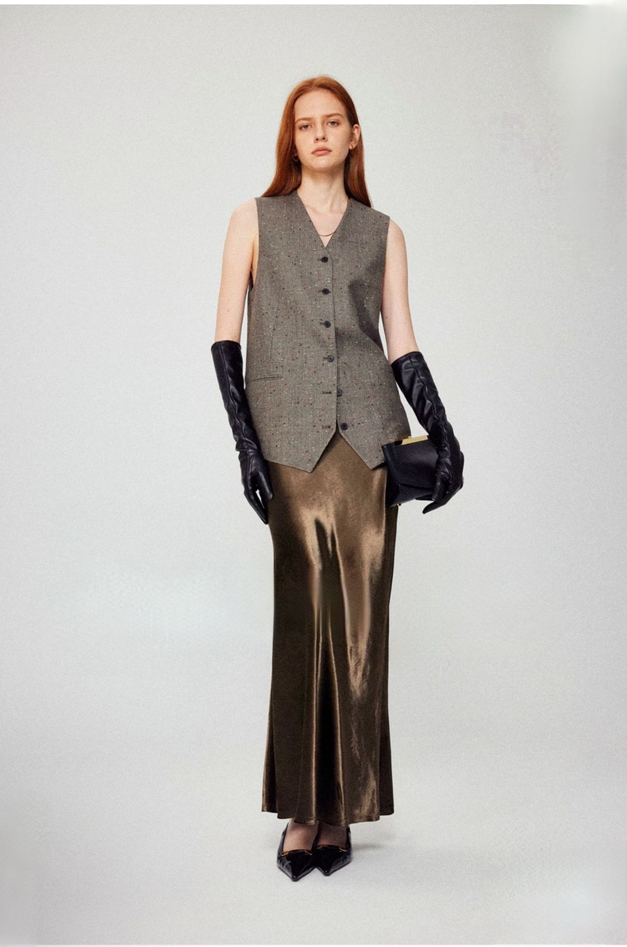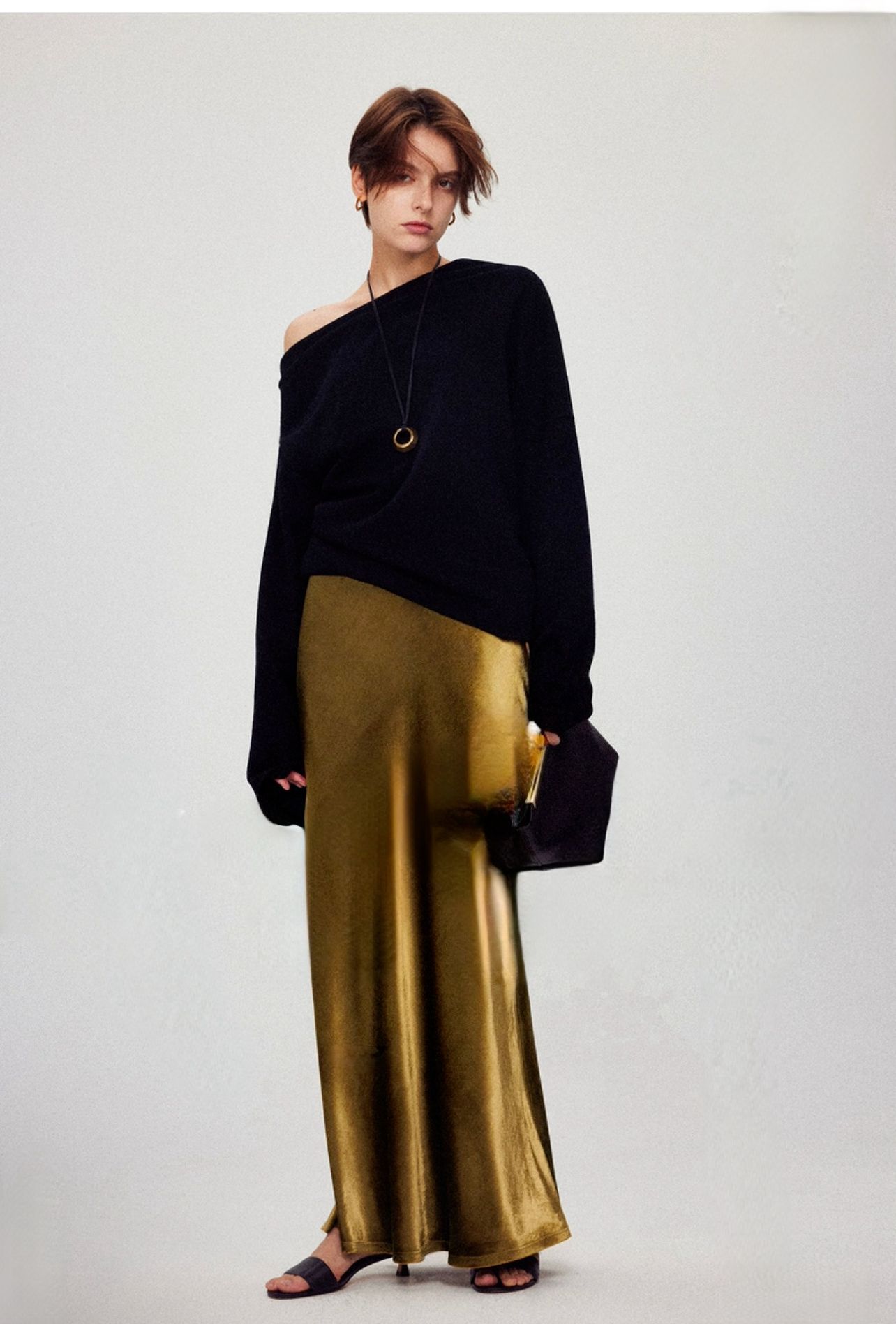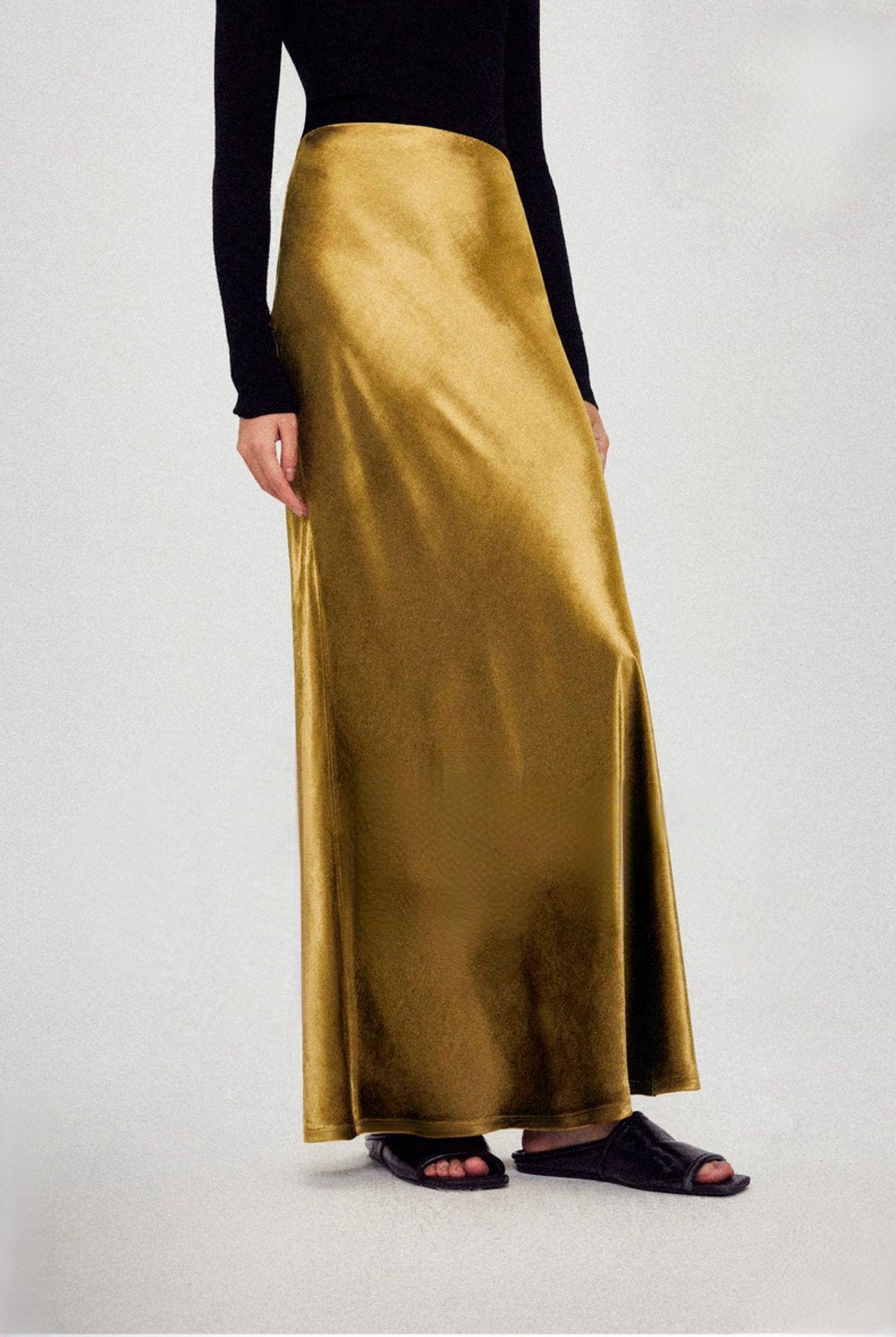 Velvet skirt women's autumn and winter high-end minimalist gloss H-shaped straight A-shaped retro long skirt skirt