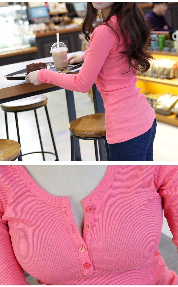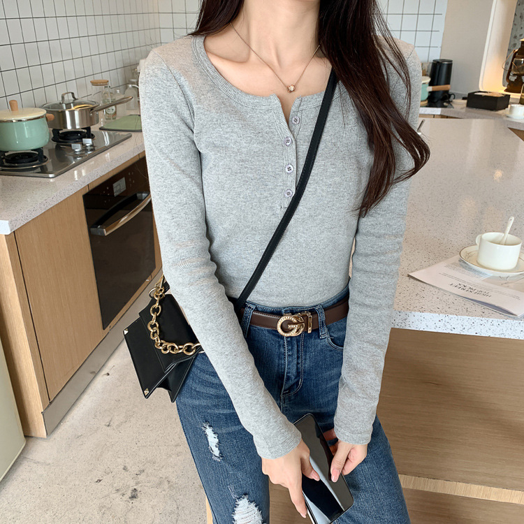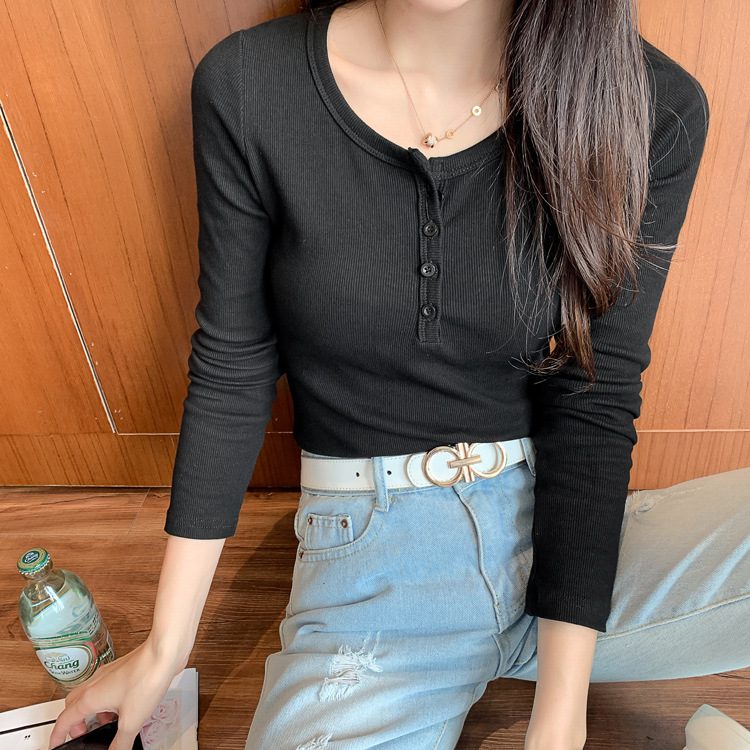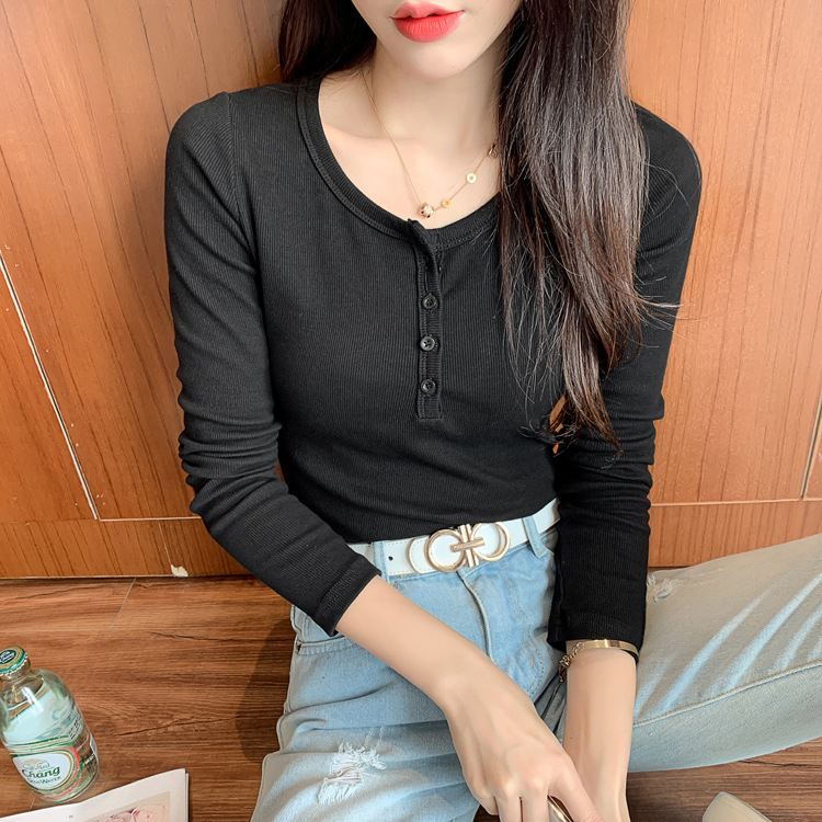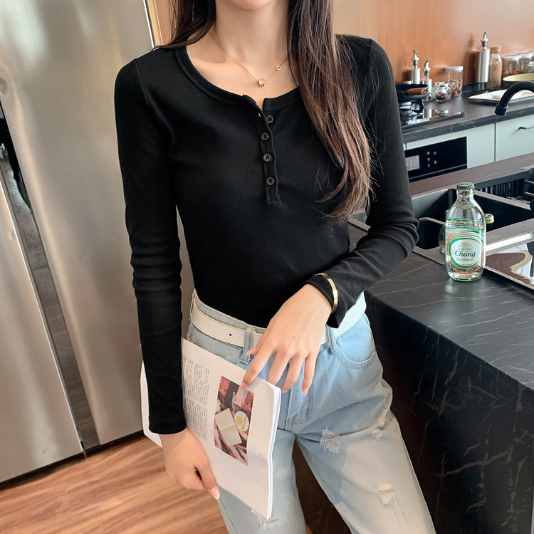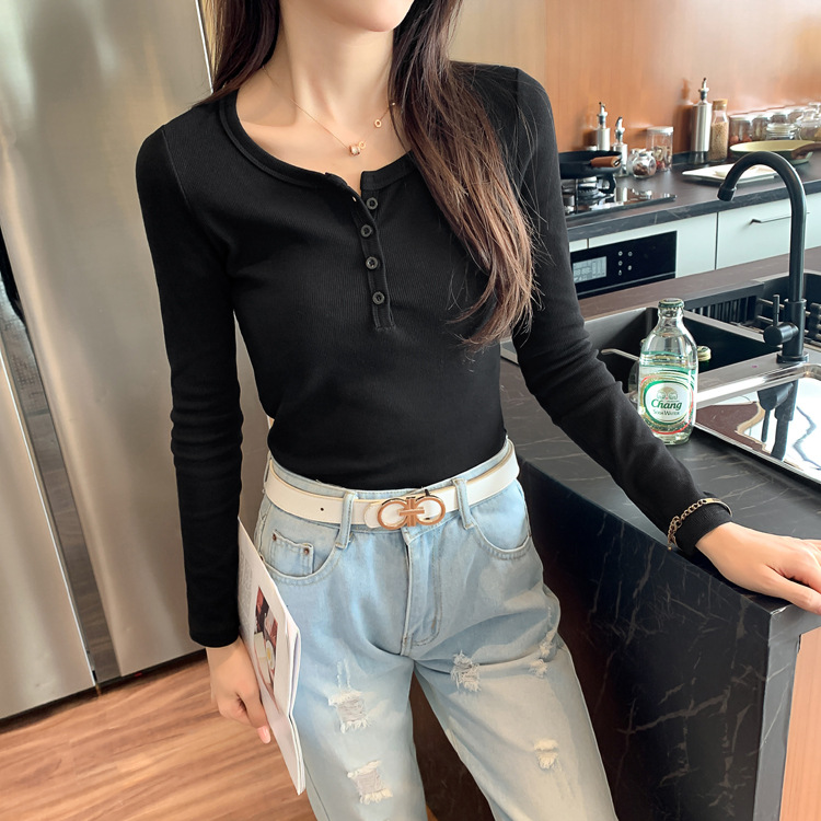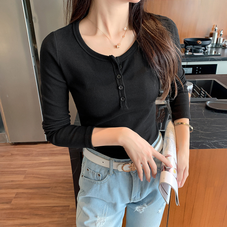 Versatile and not picky, excellent cotton threaded button-down bottoming shirt women's long-sleeved T-shirt 2026 spring new slim-fitting and thin top
