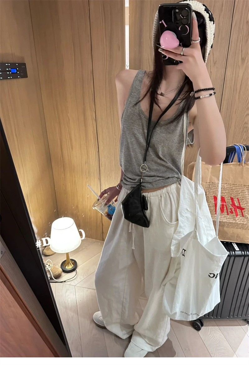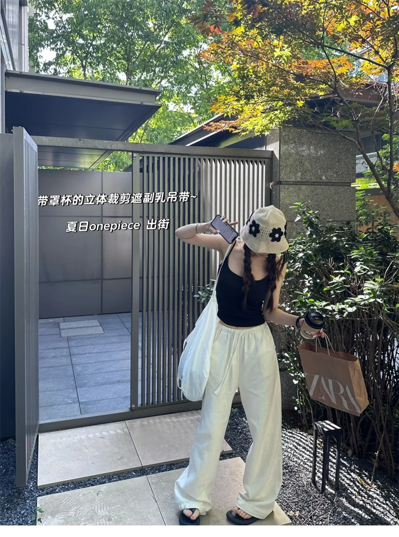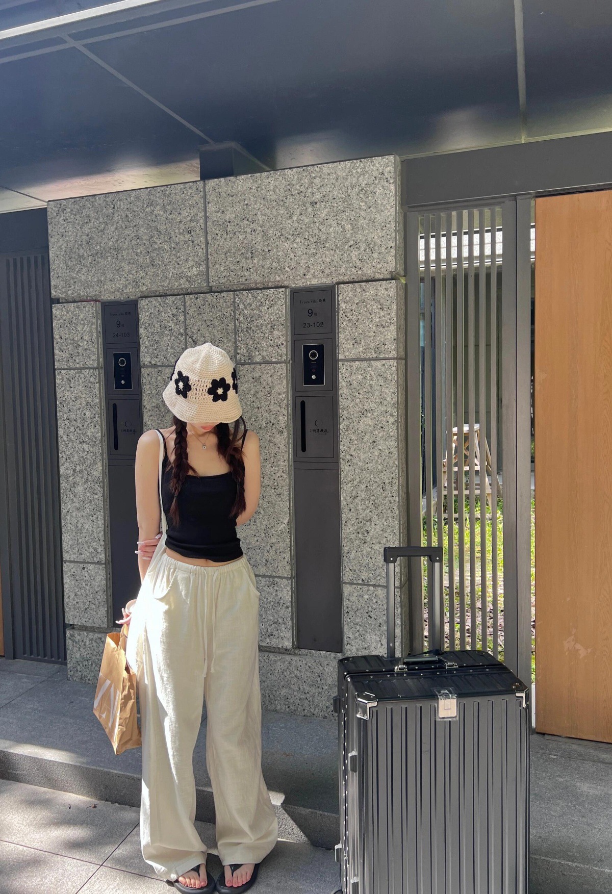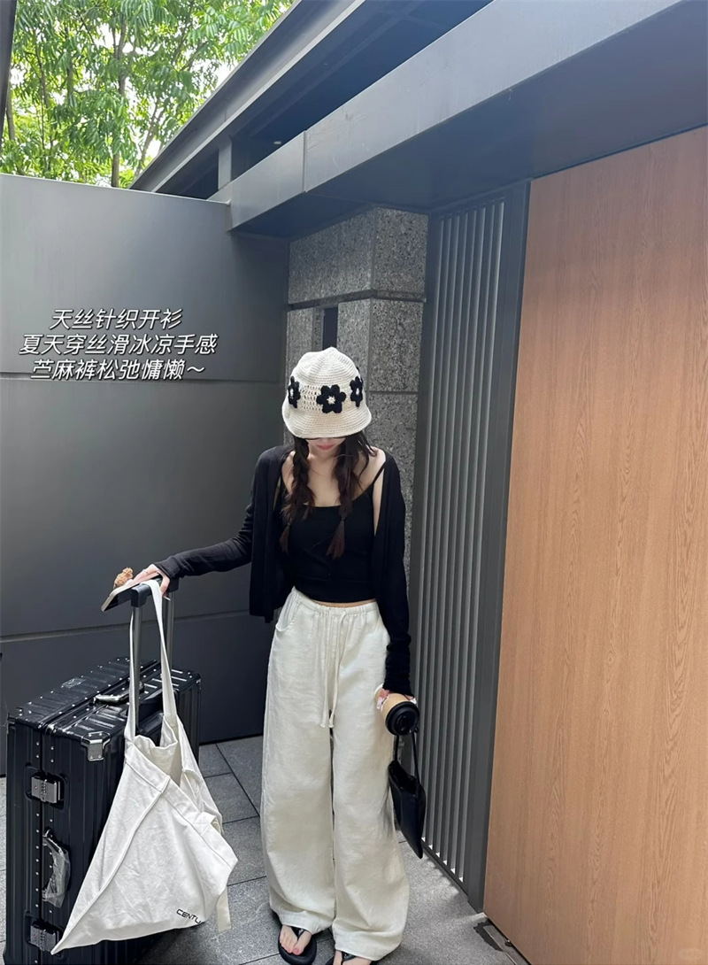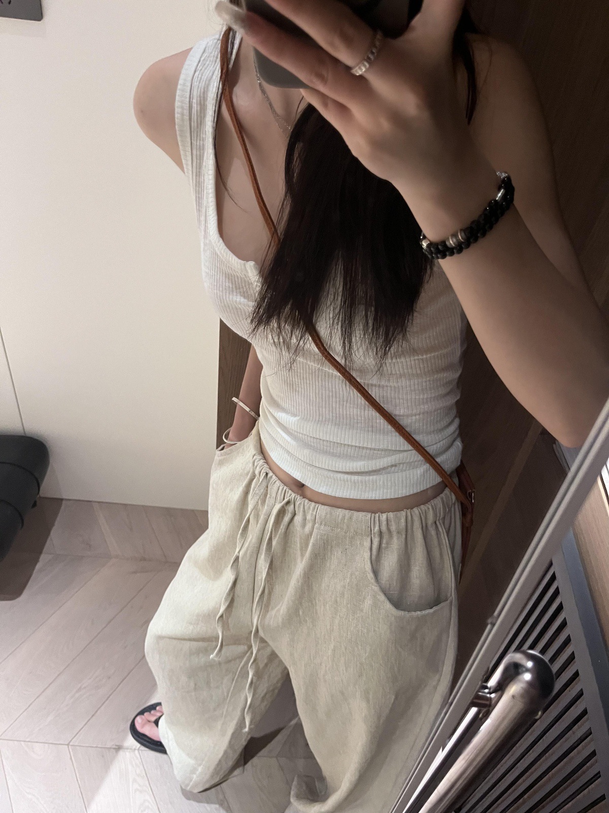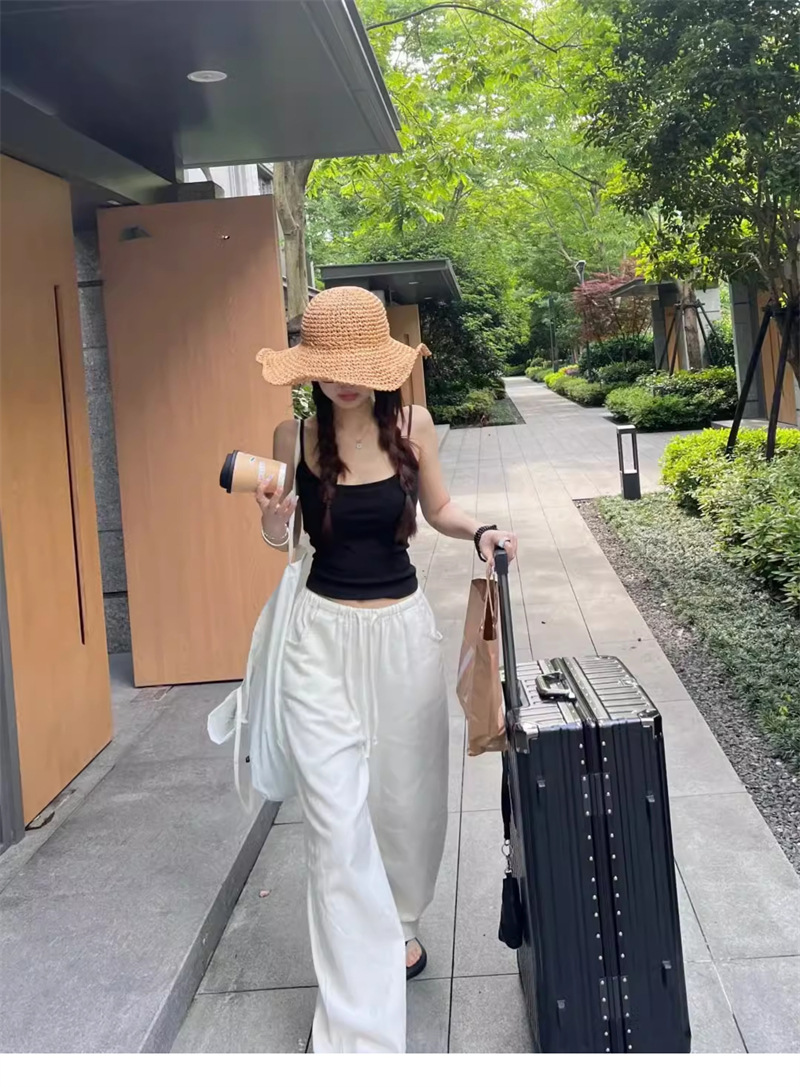 Washed ramie pants 2025 summer elastic waist drawstring casual cotton and linen wide-leg pants women's old money wind thin linen pants