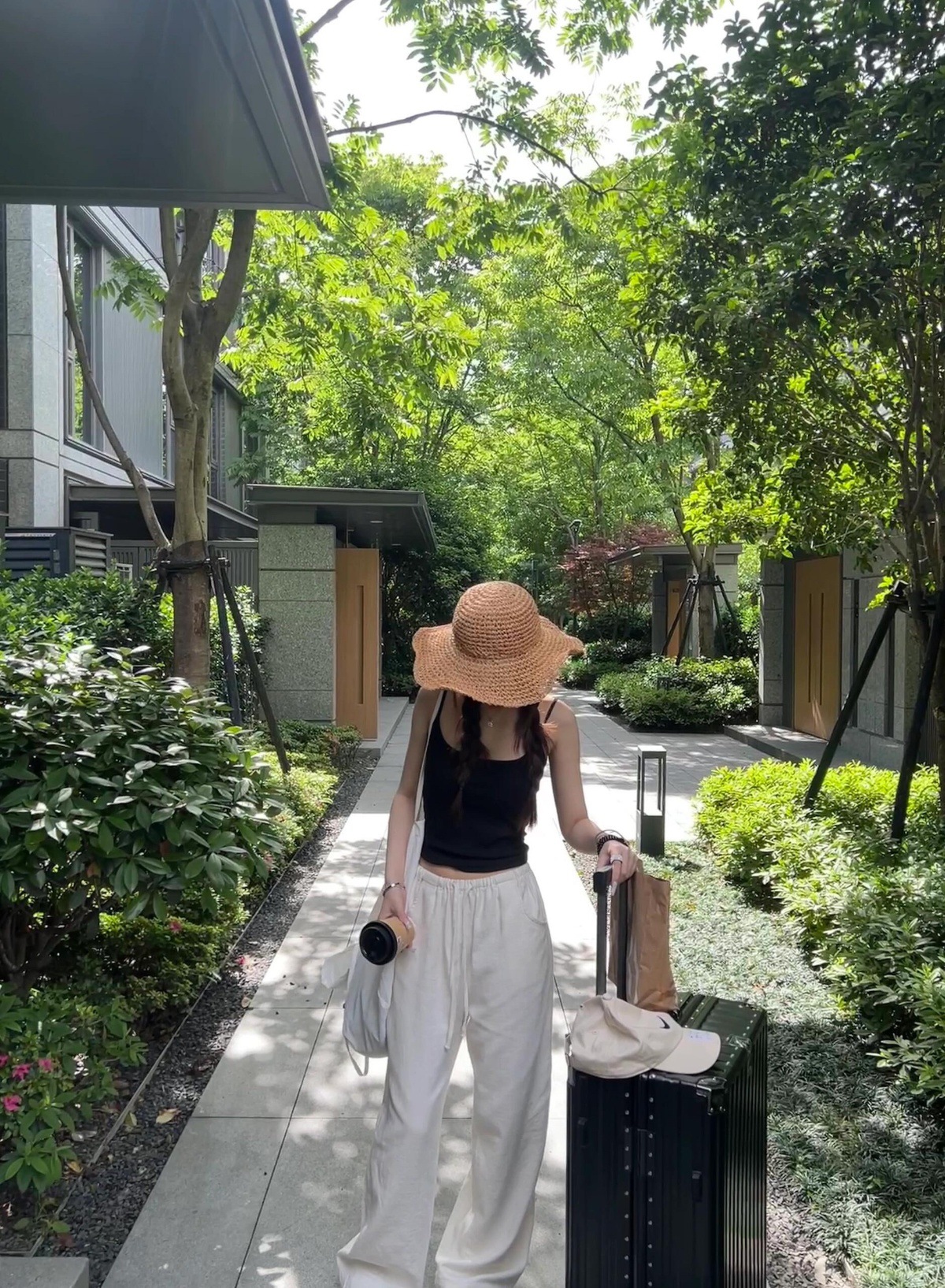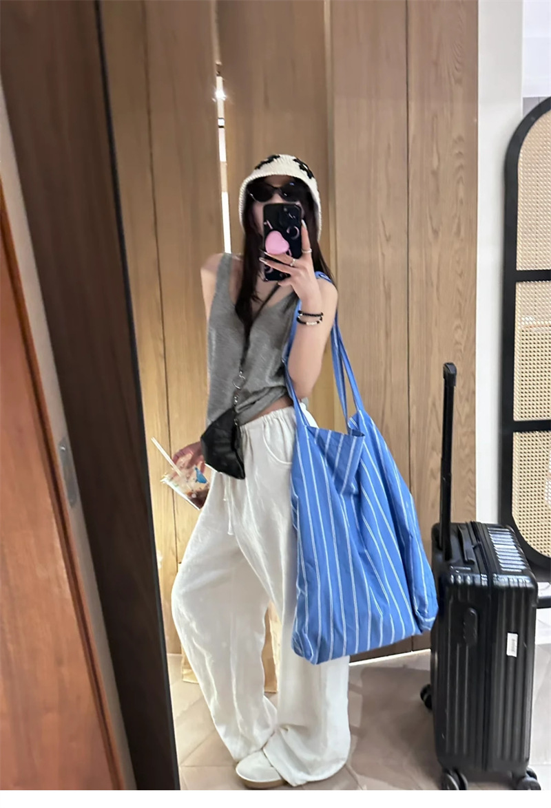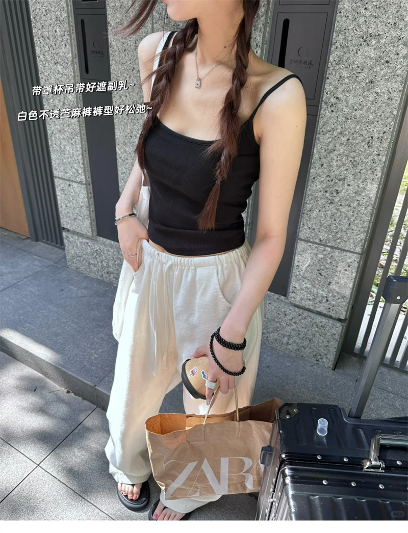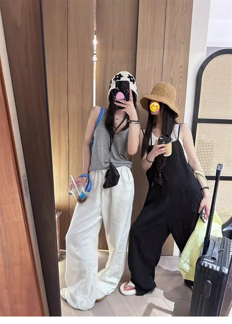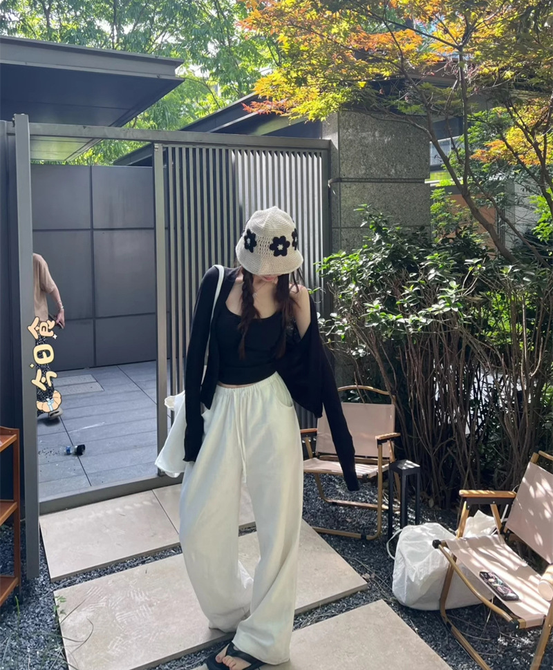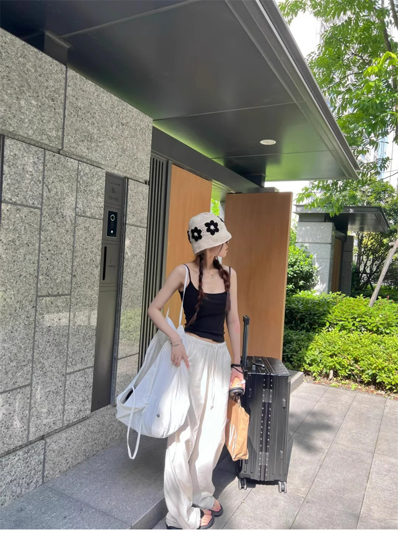 Washed ramie pants 2025 summer elastic waist drawstring casual cotton and linen wide-leg pants women's old money wind thin linen pants