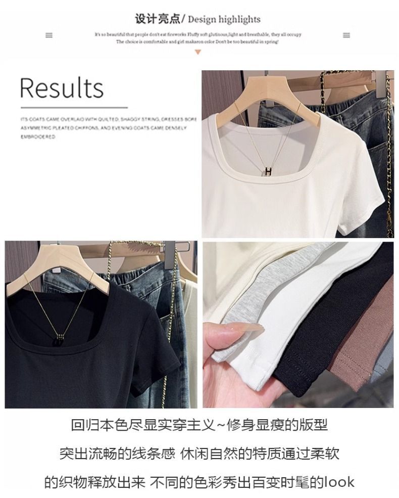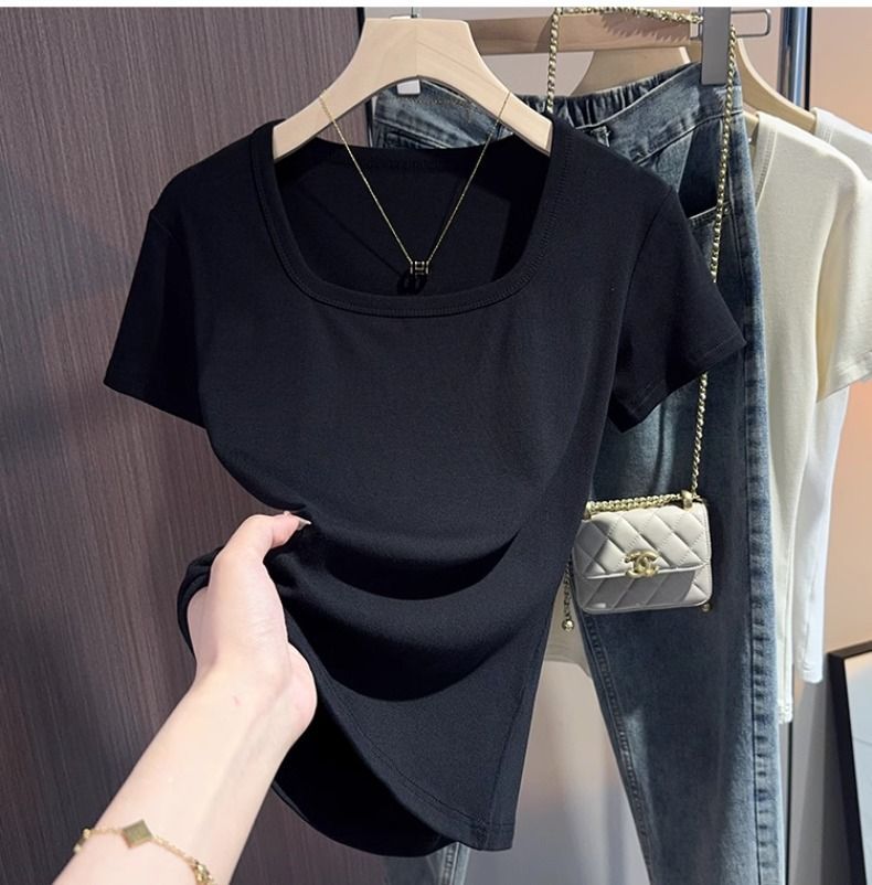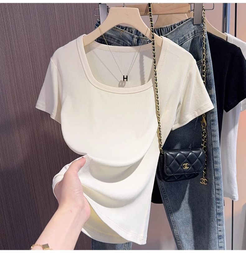 White square-neck T-shirt women's short-sleeved 2025 summer new sweet age-reducing high-end slim-fitting low-neck top