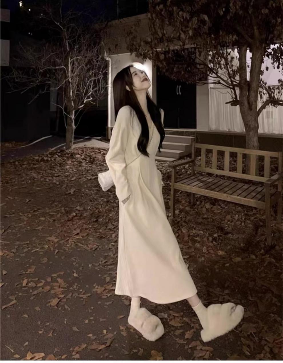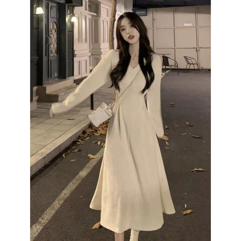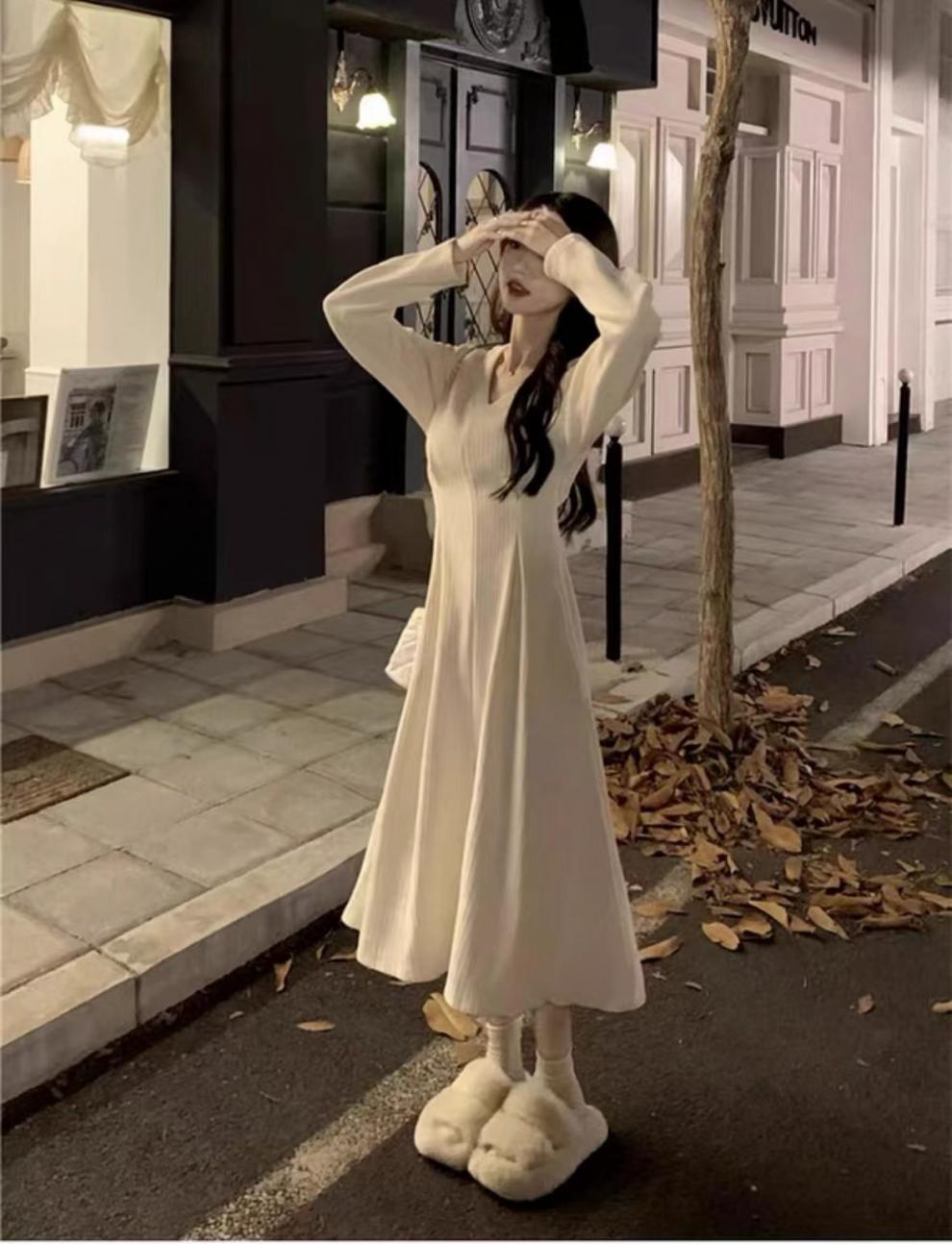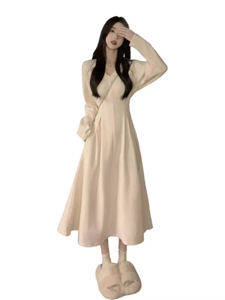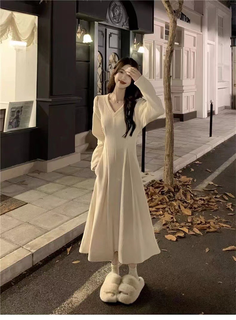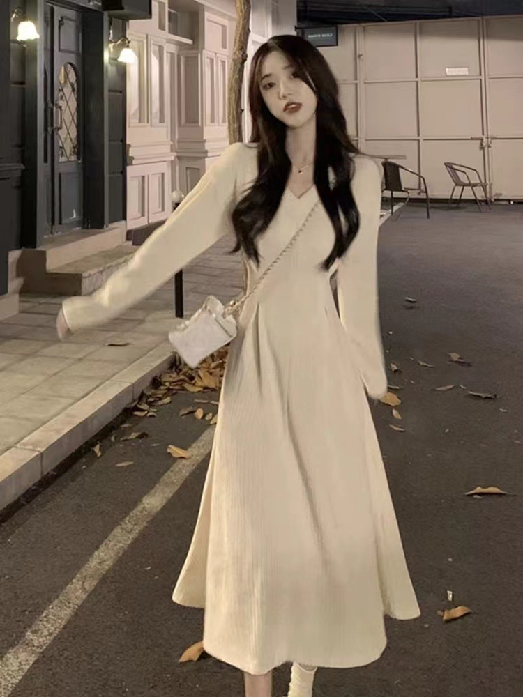 White V-neck underwear with a base dress Women's pre-autumn outfit 2026 new French temperament long skirt
