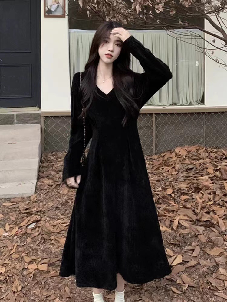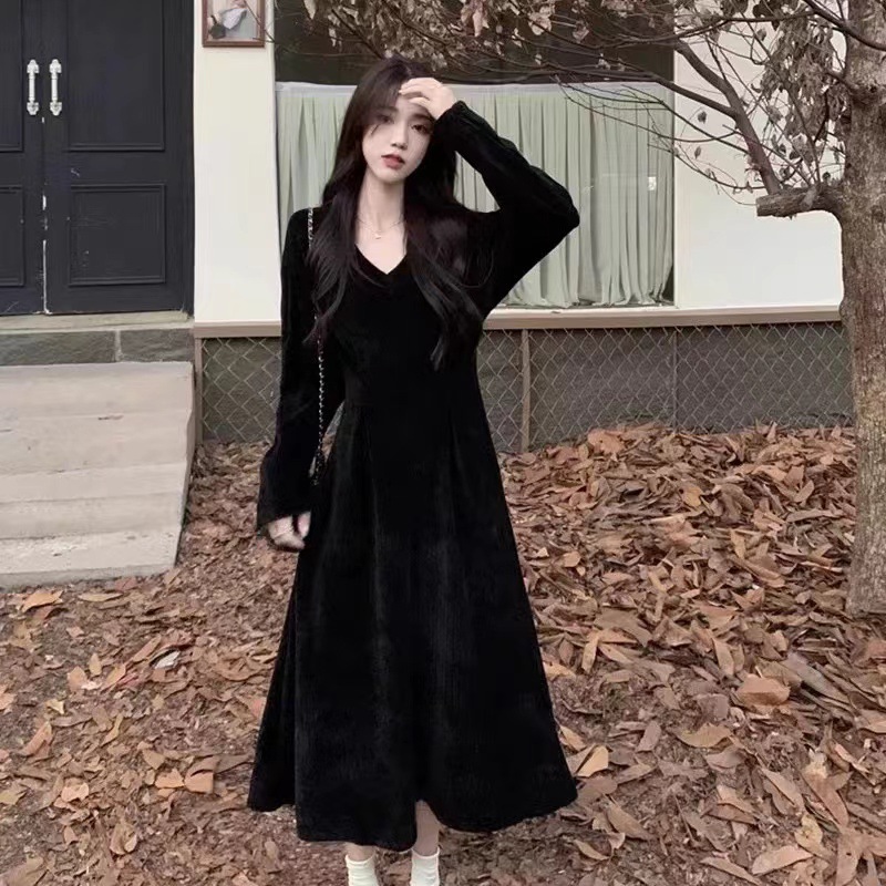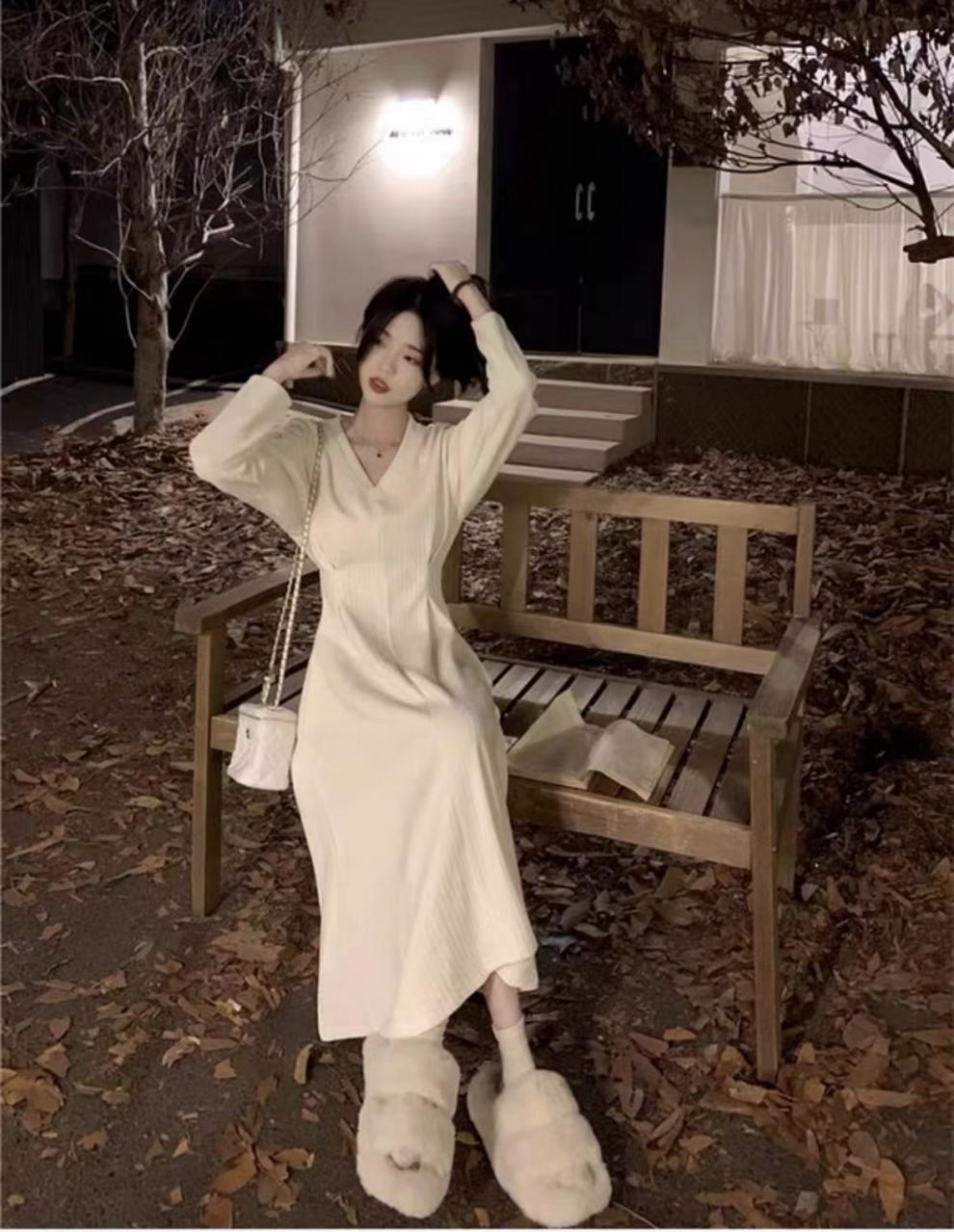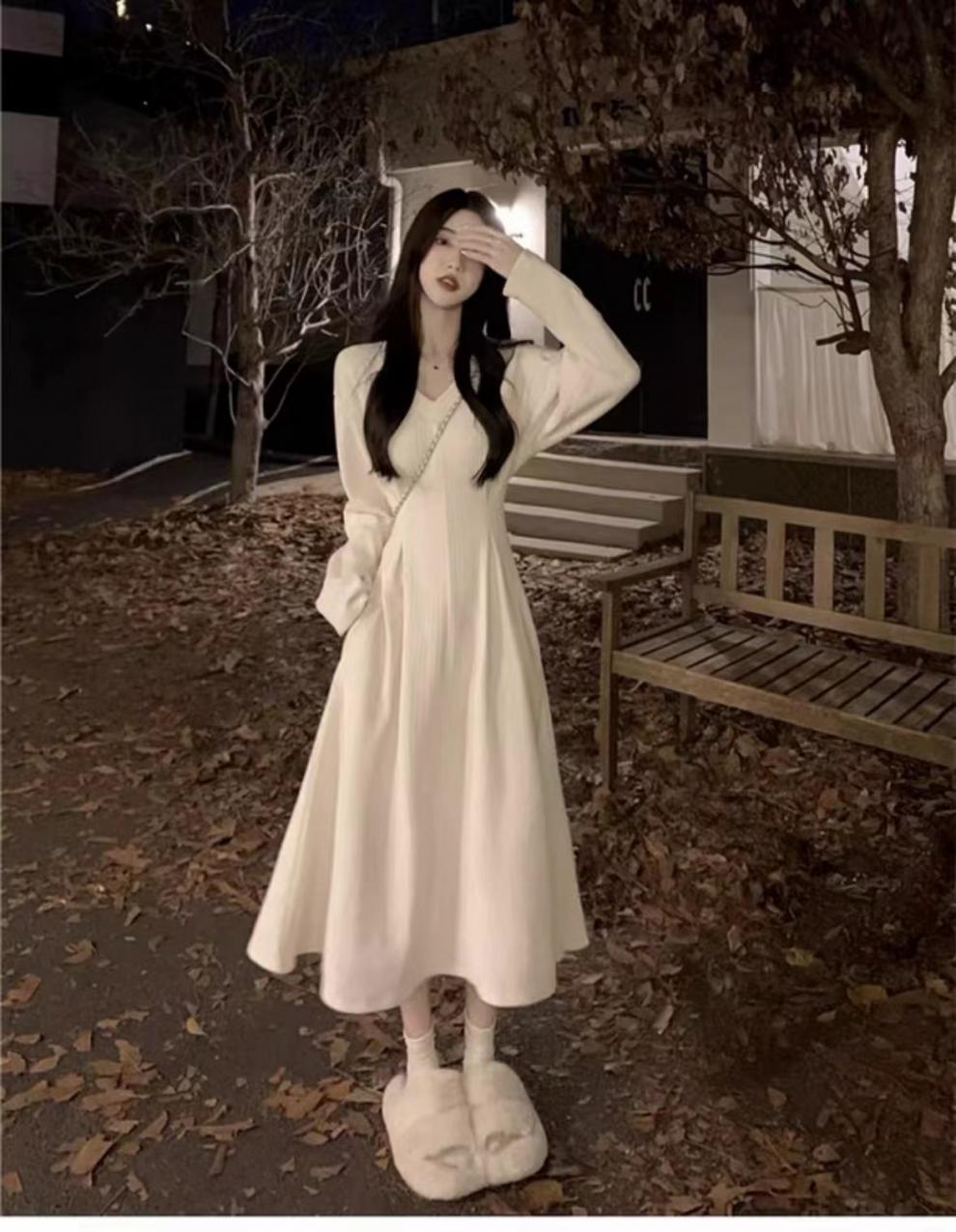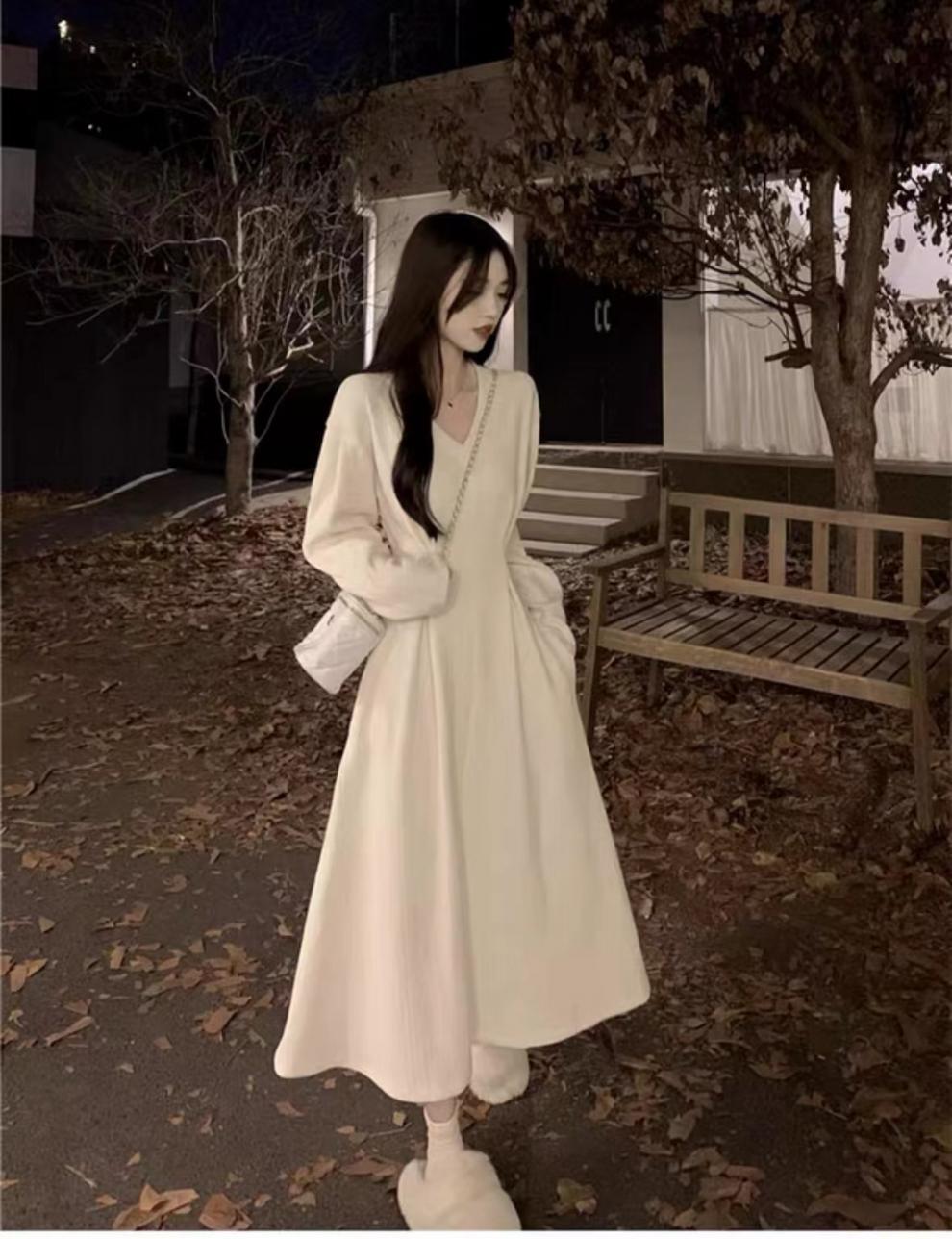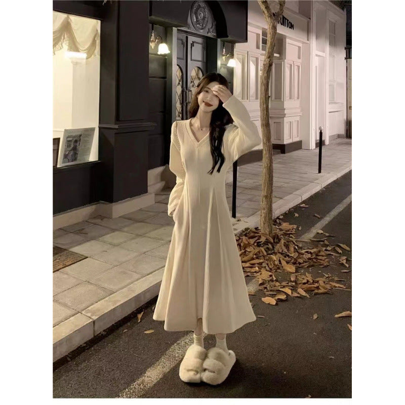 White V-neck underwear with a base dress Women's pre-autumn outfit 2026 new French temperament long skirt