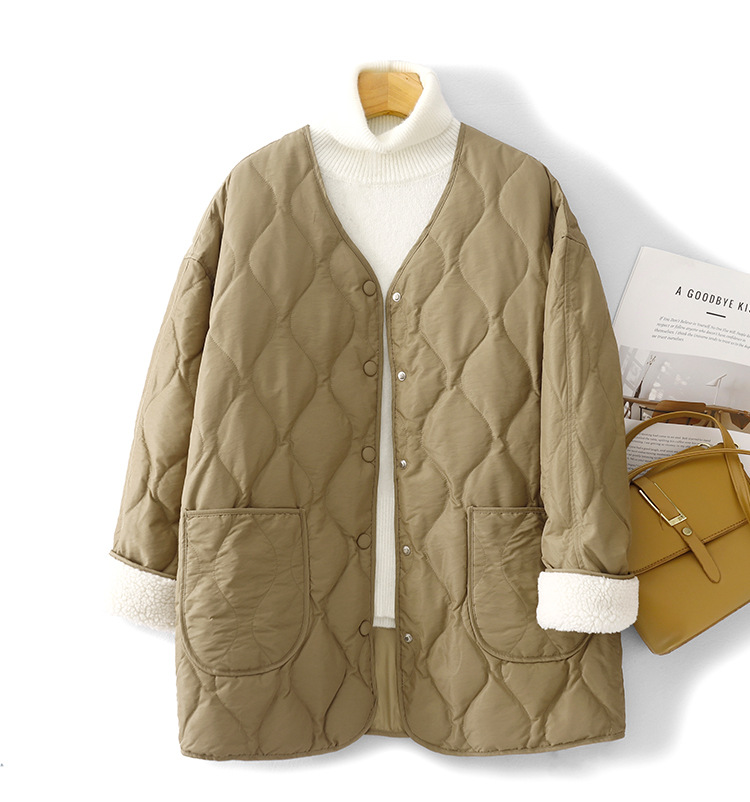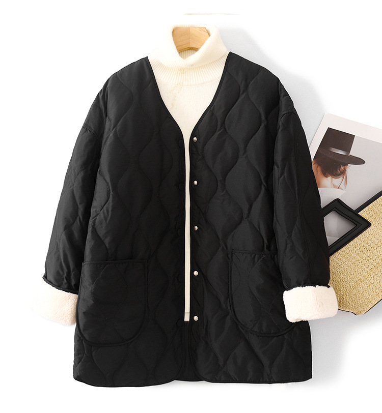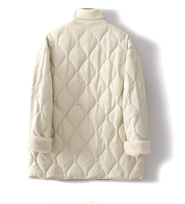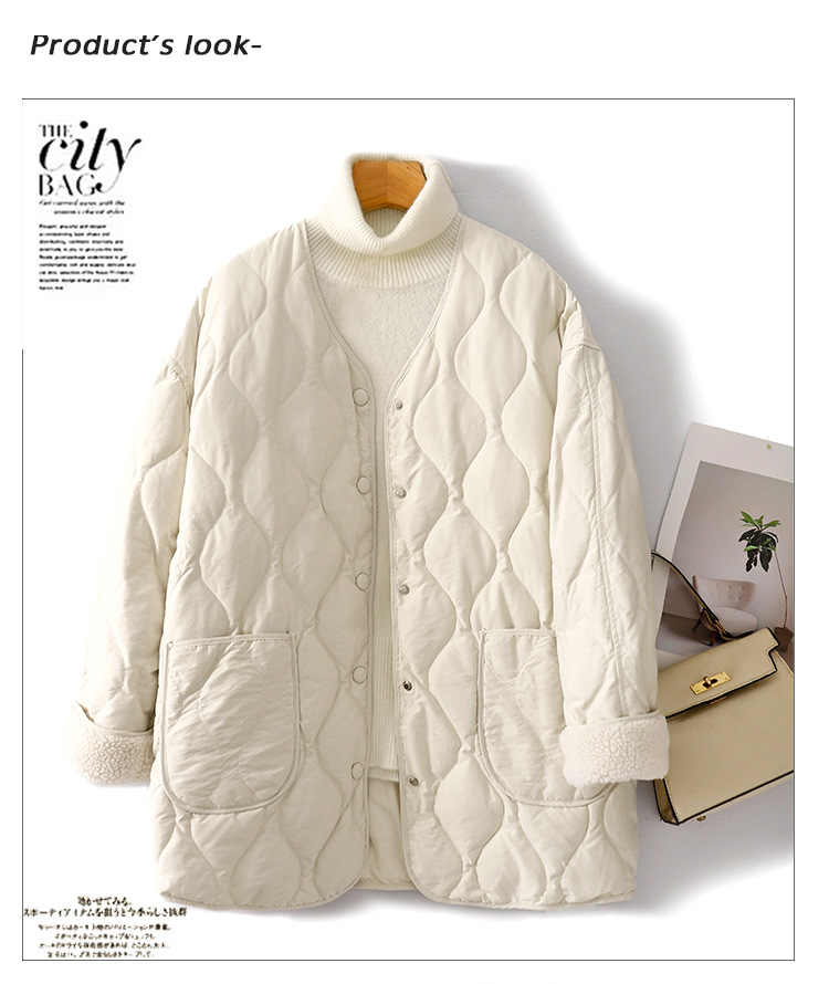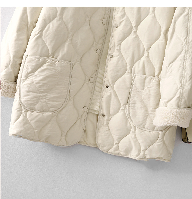 Winter 2025 new Korean version lamb wool splicing medium and long women's small light cotton jacket
