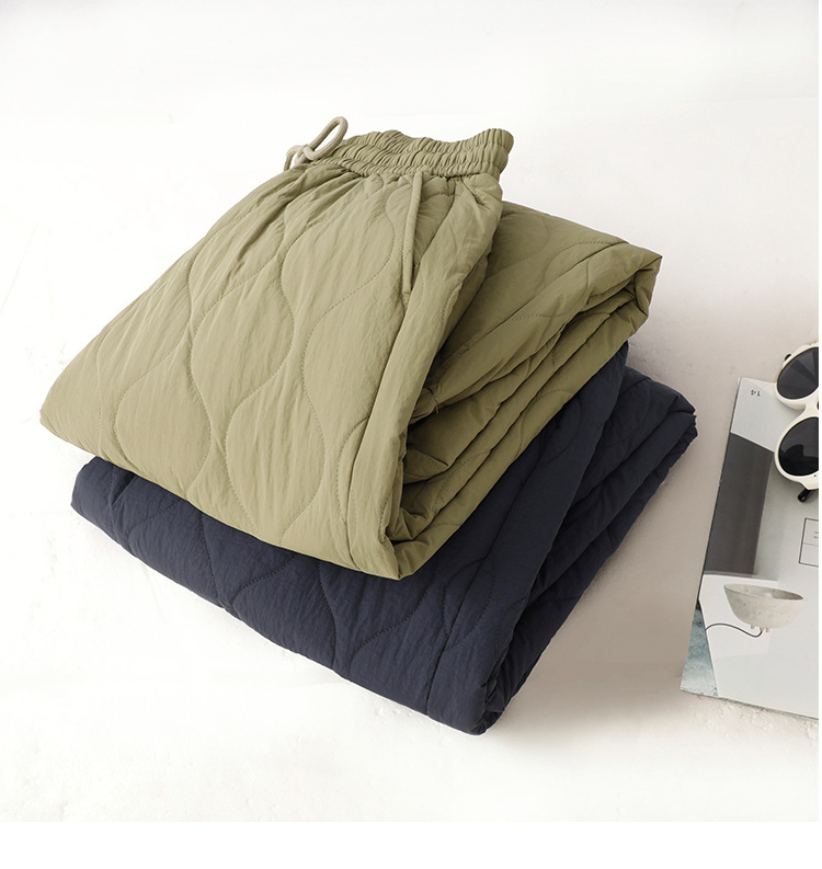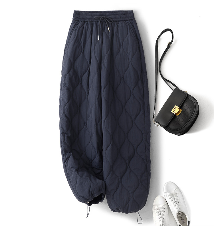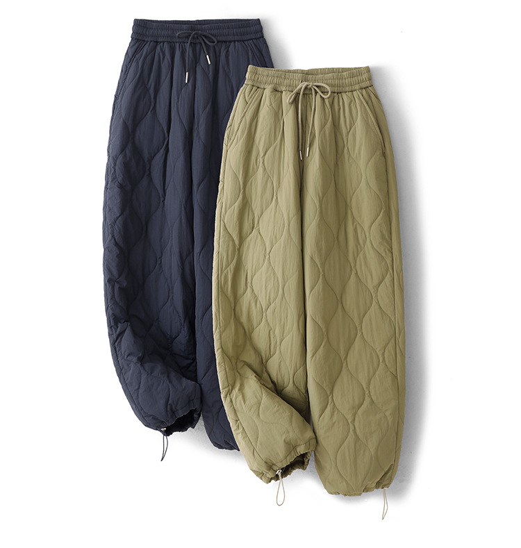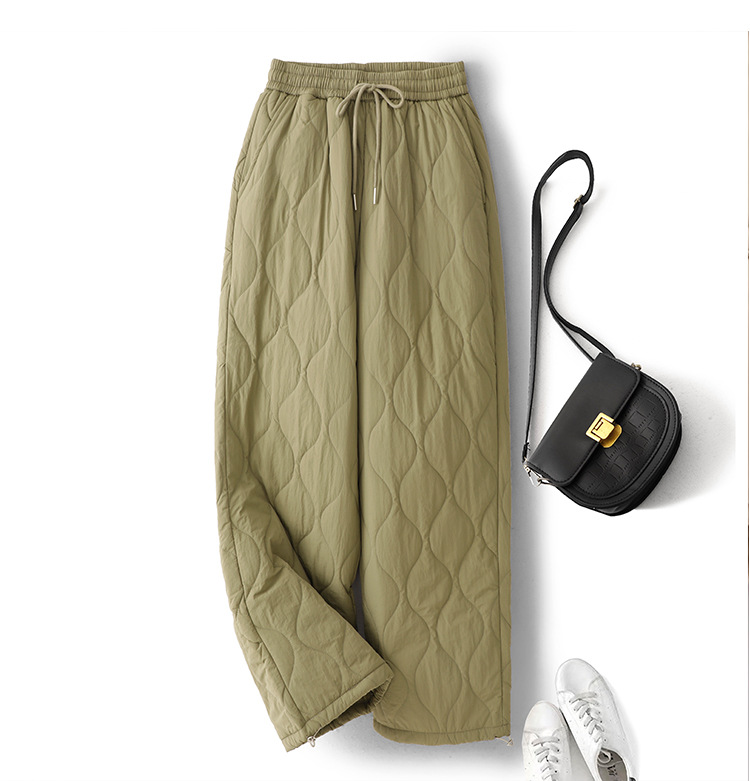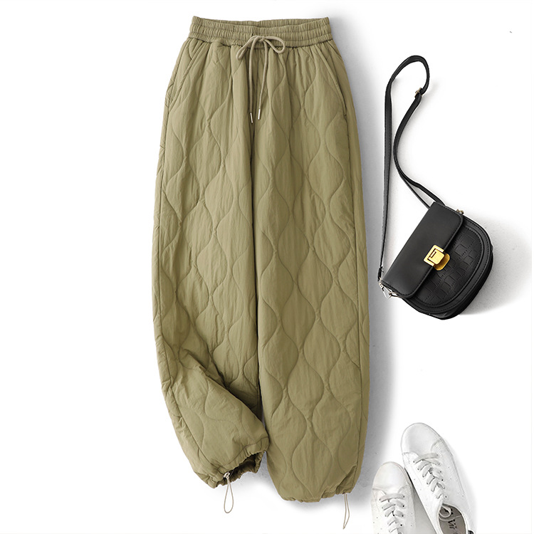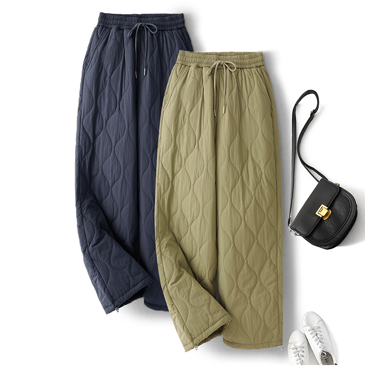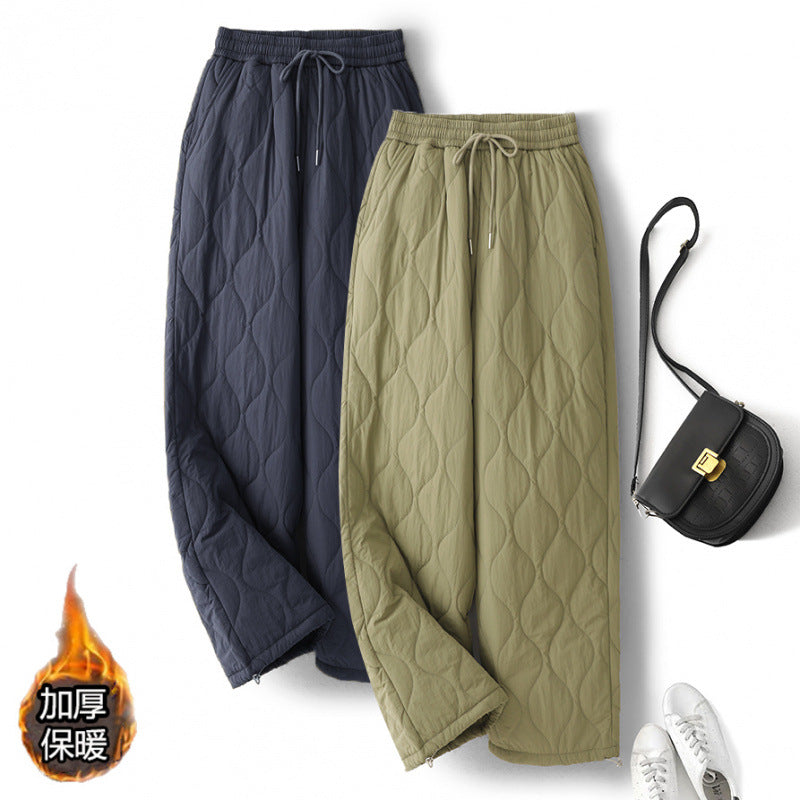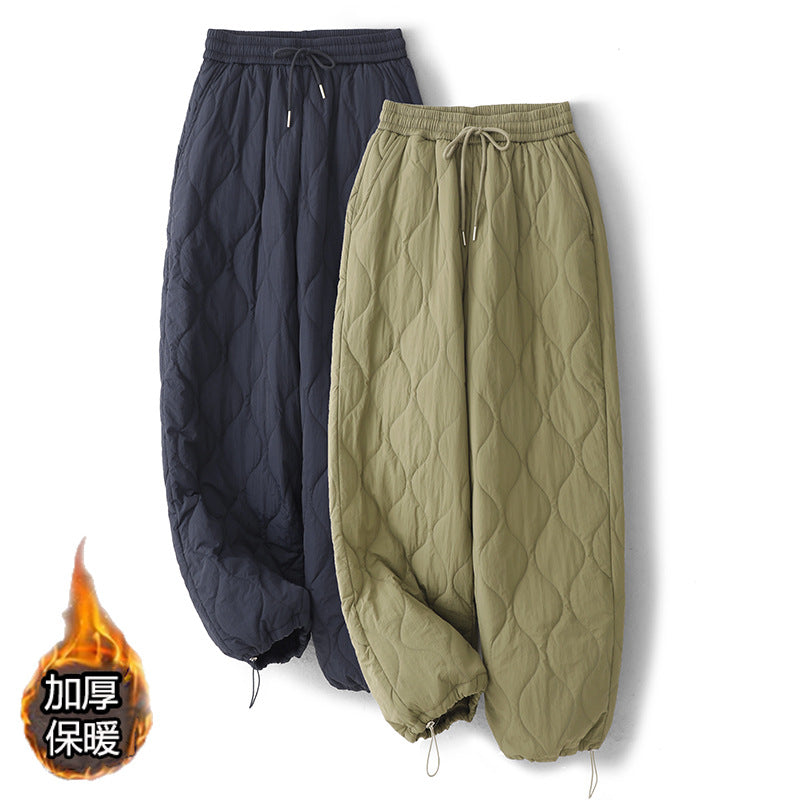 Winter 2025 Thickened Warm Crimping Line Cotton Pants Women's Drawstring Burr Edge Tall Loose Casual Pants