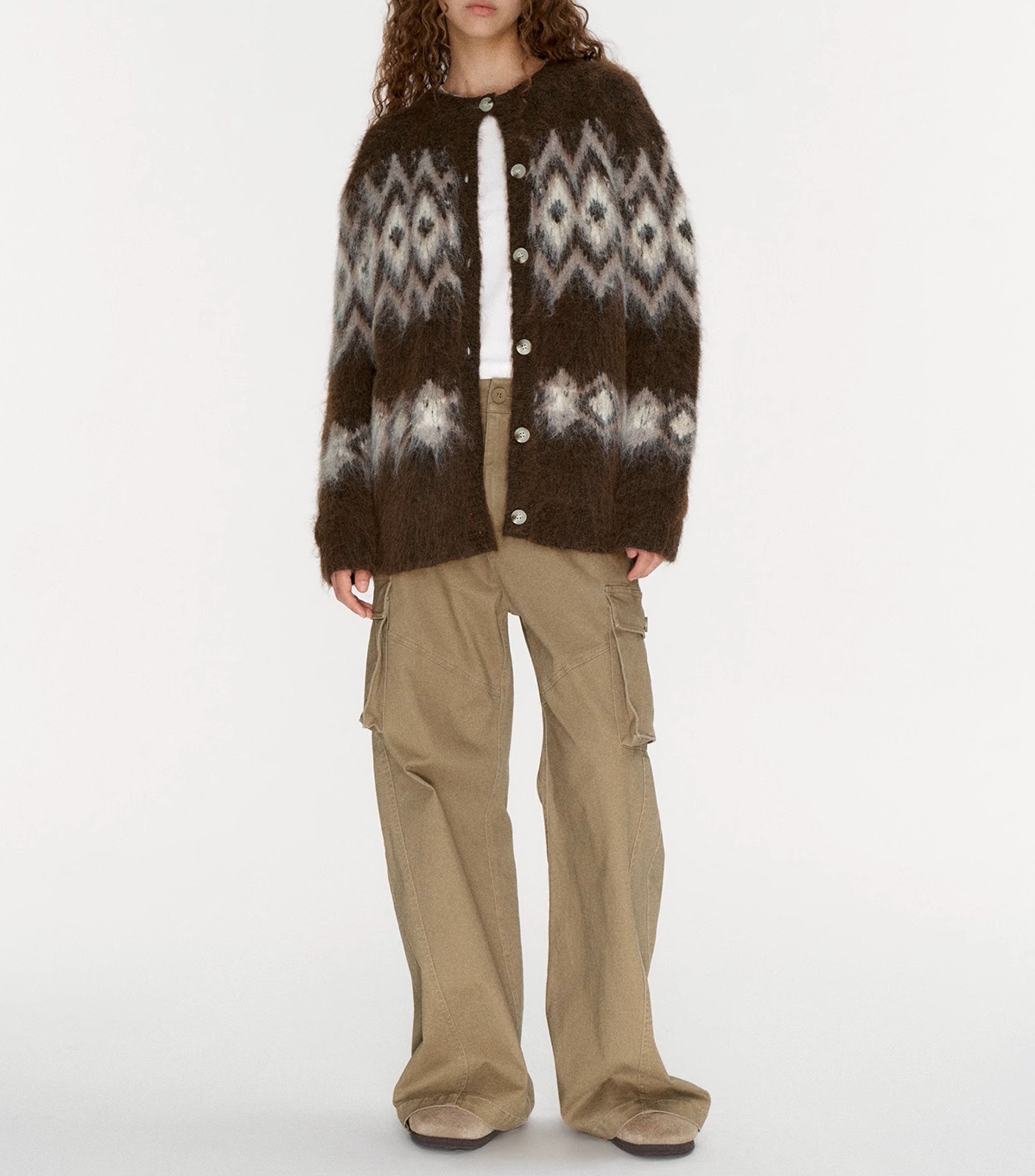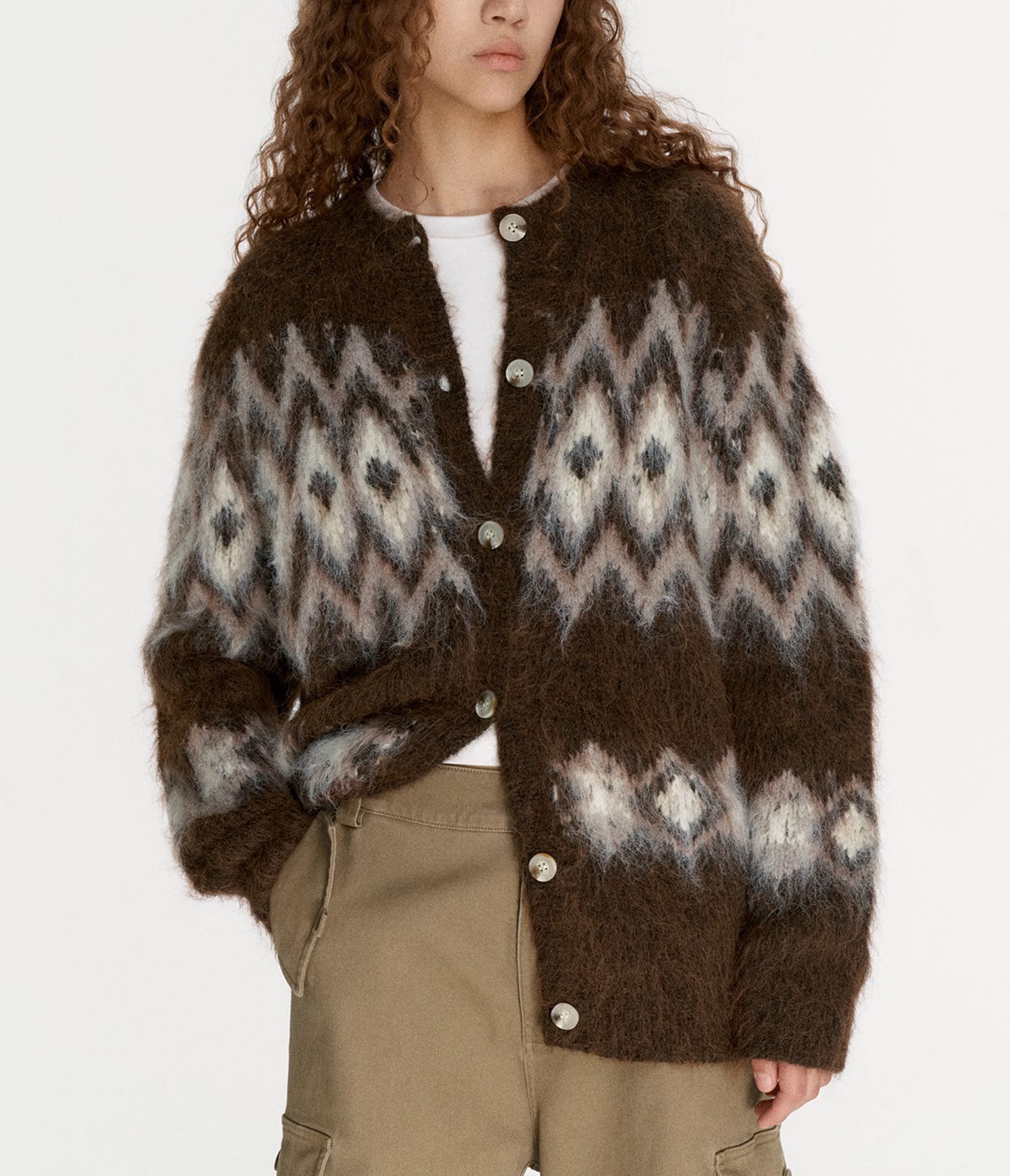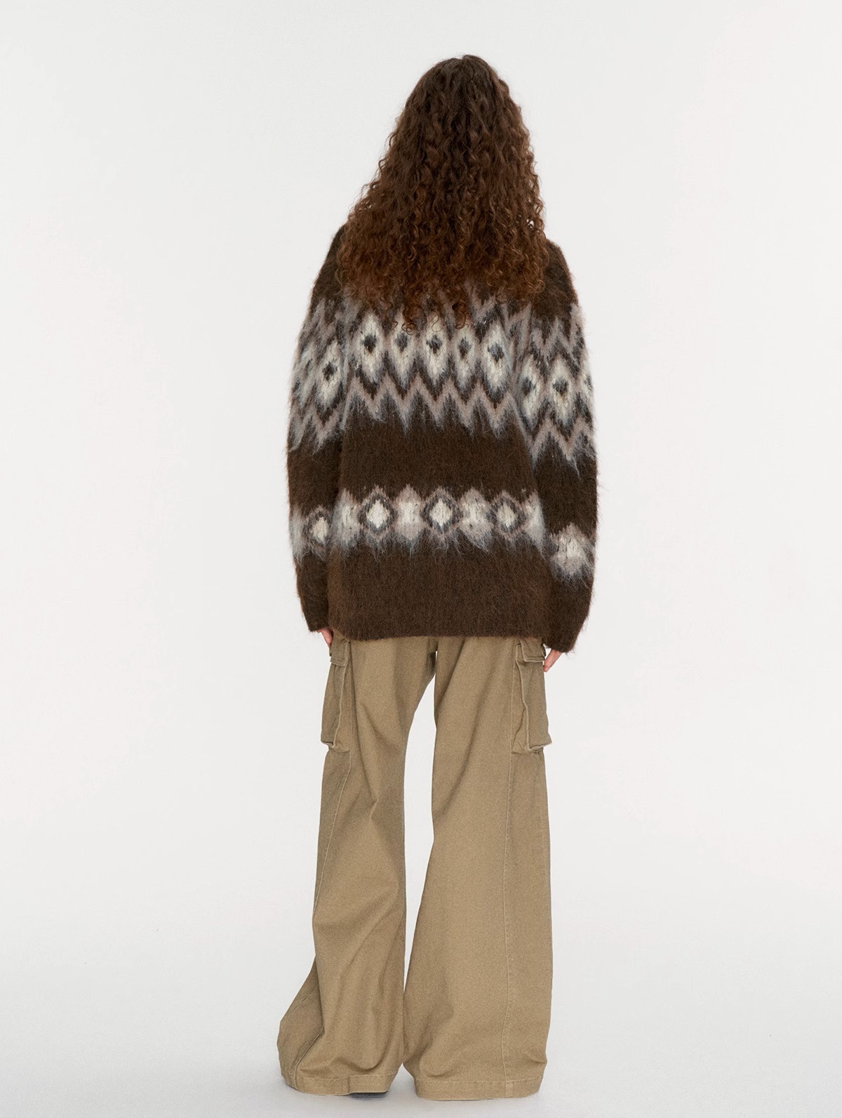 Winter atmosphere wool cardigan, jacquard pulling craft loose Fair Island sweater jacket