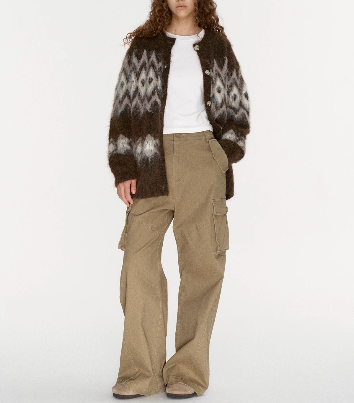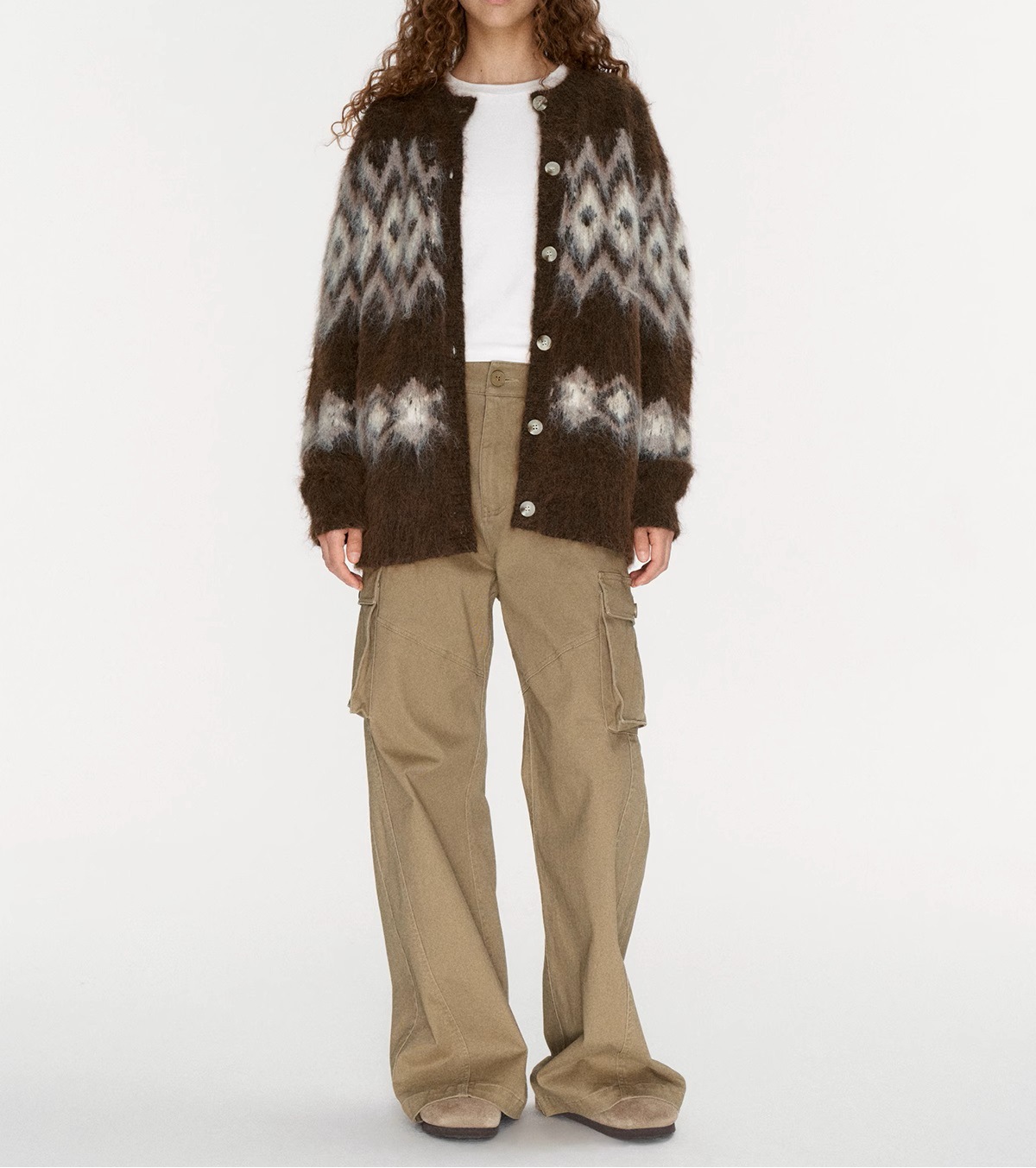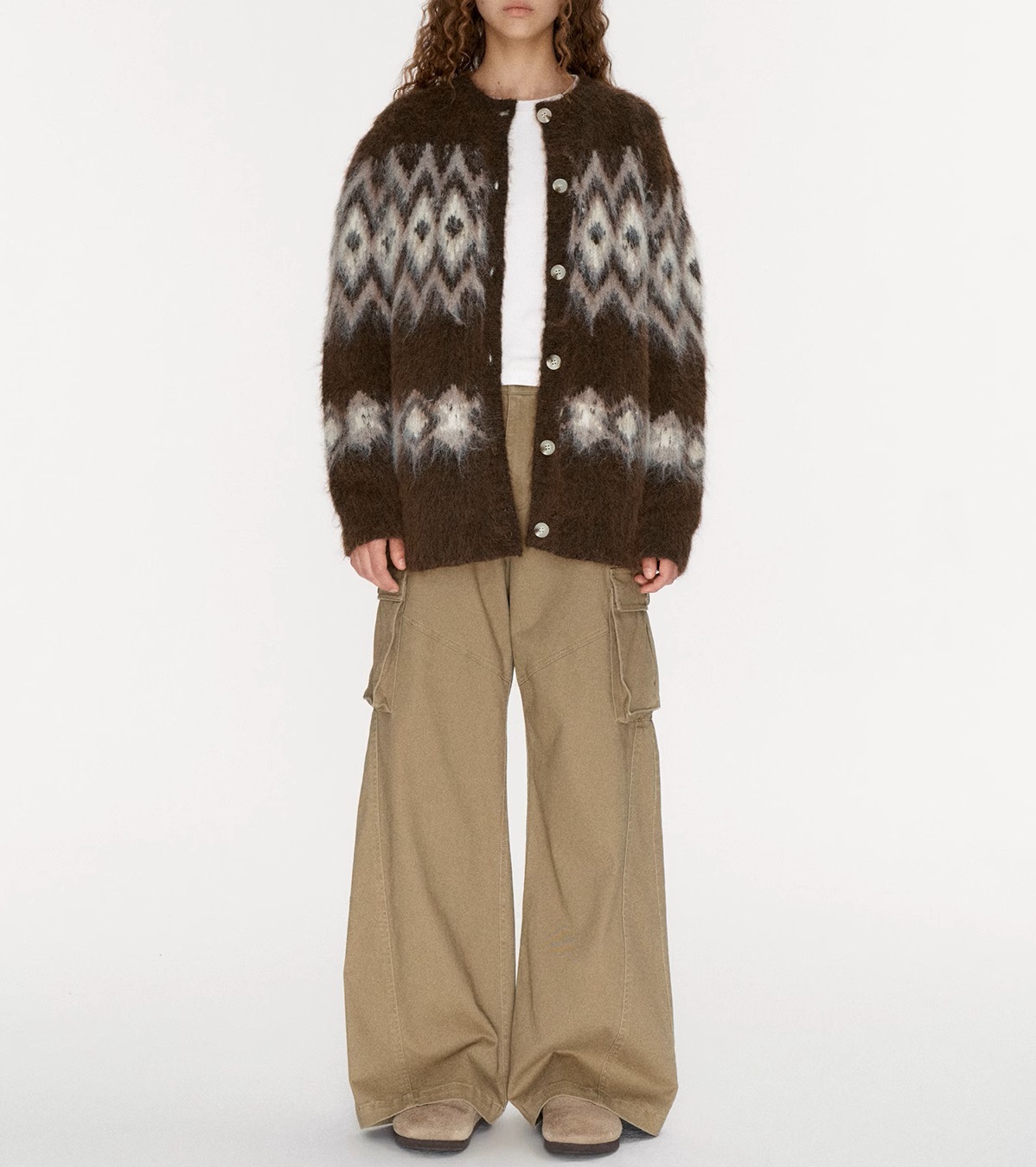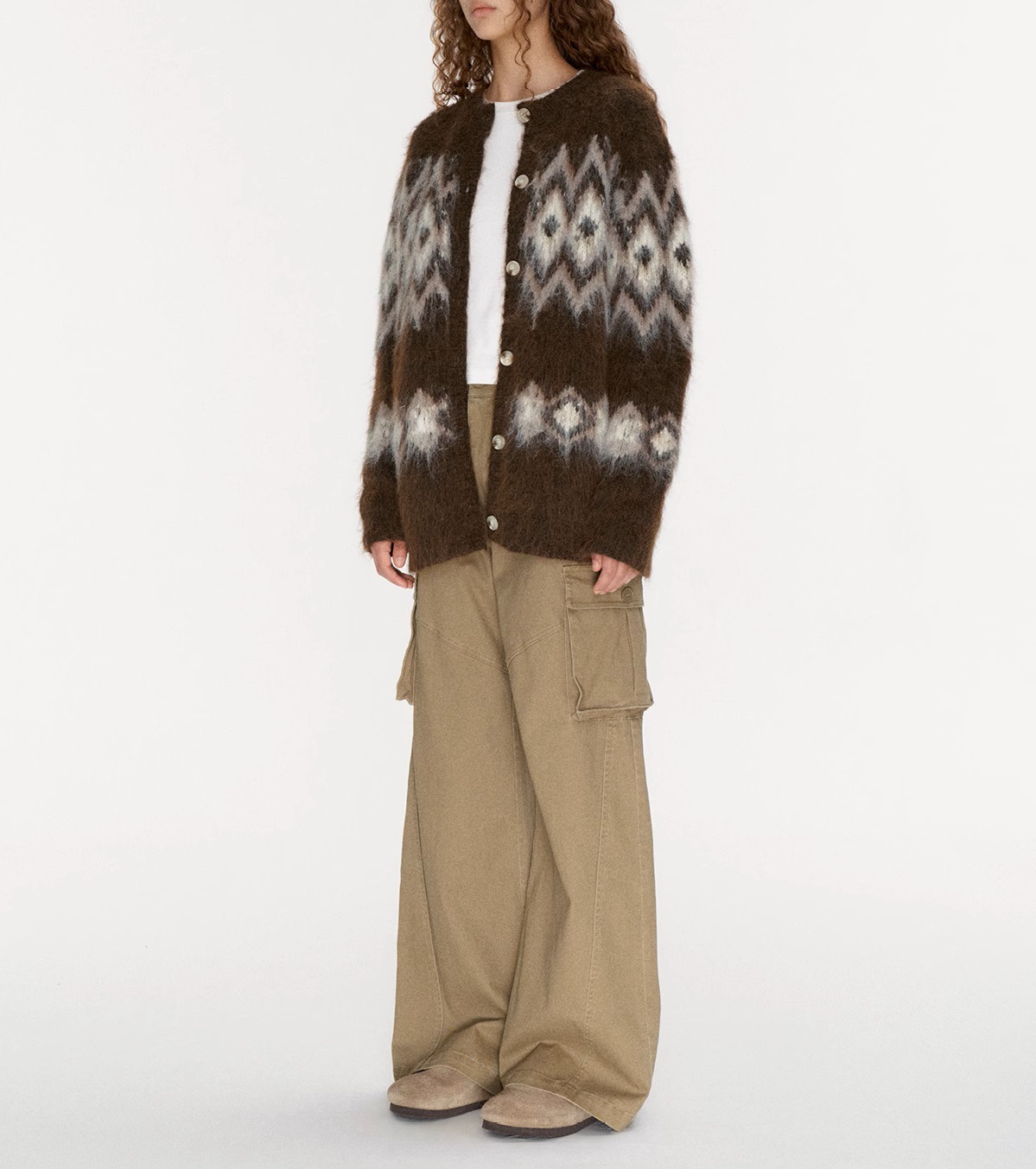 Winter atmosphere wool cardigan, jacquard pulling craft loose Fair Island sweater jacket