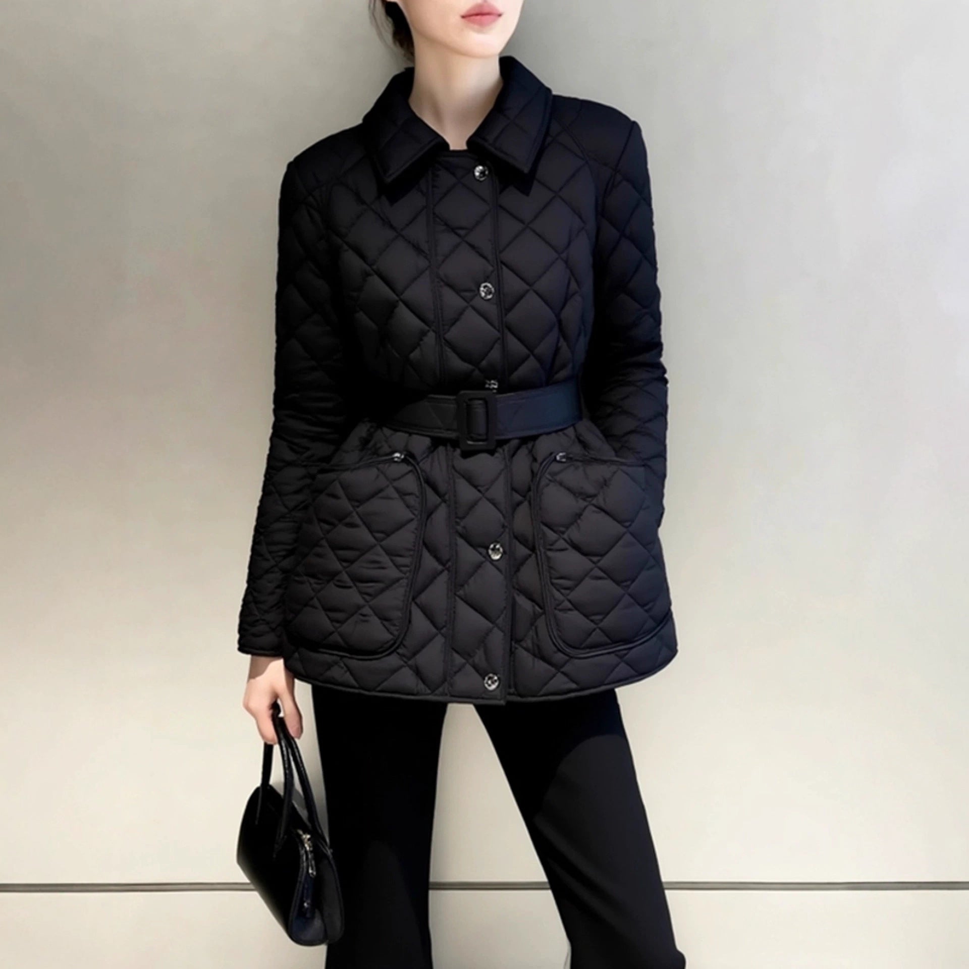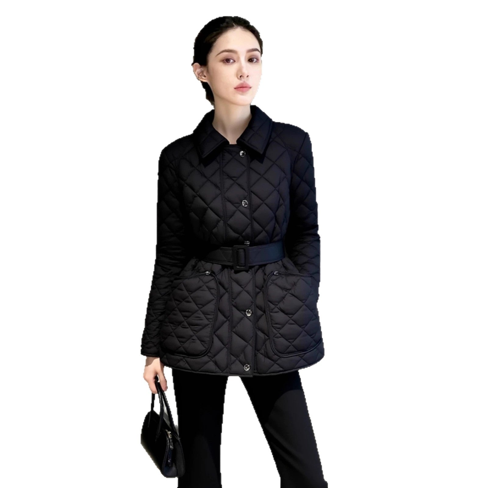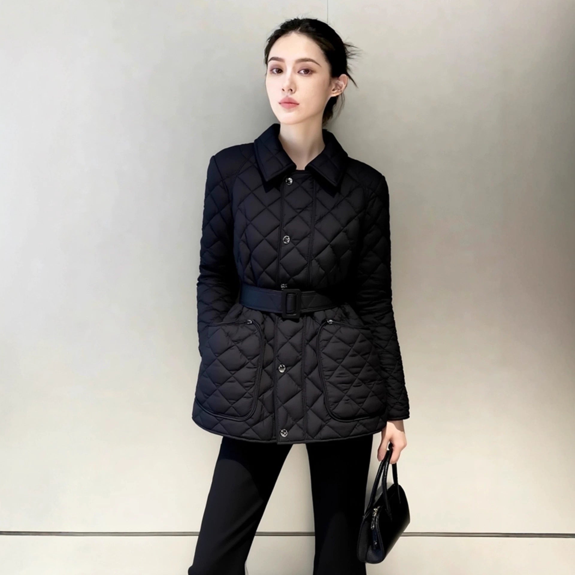 Winter cotton clothes women's 2025 new models are unique, super good-looking, waist temperament, small fragrance, black cotton-padded rhombus jacket