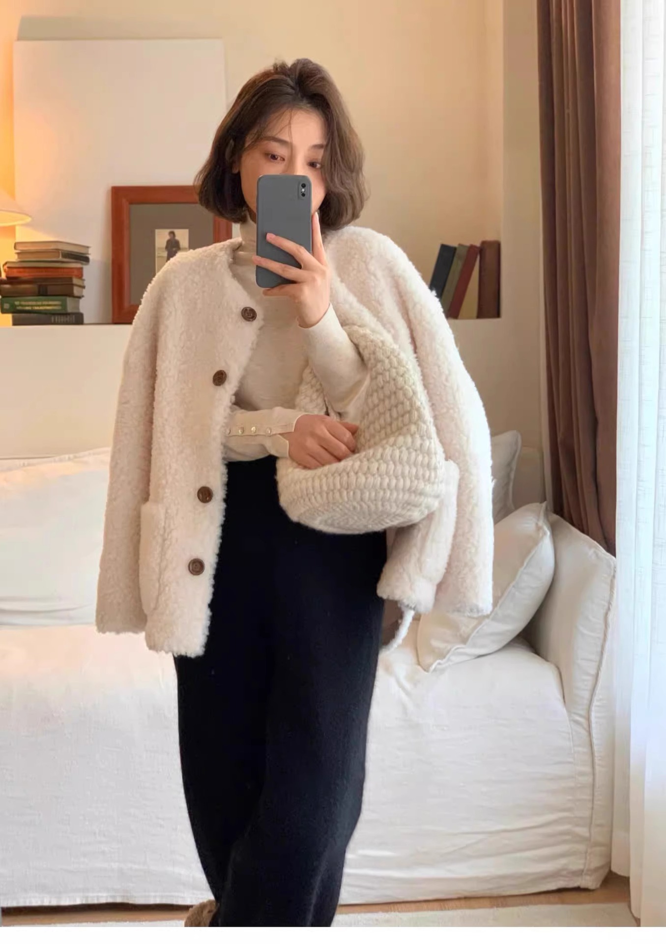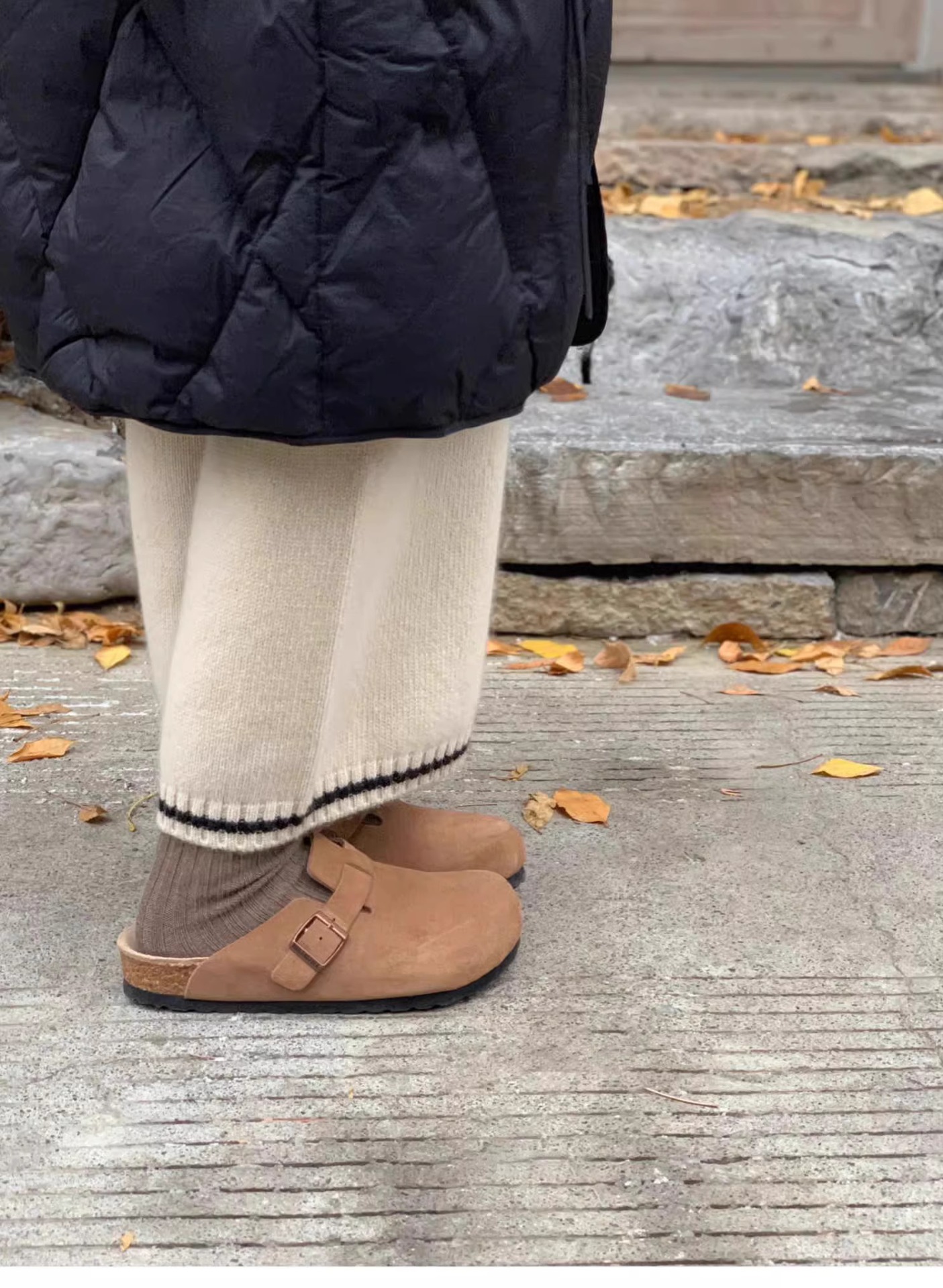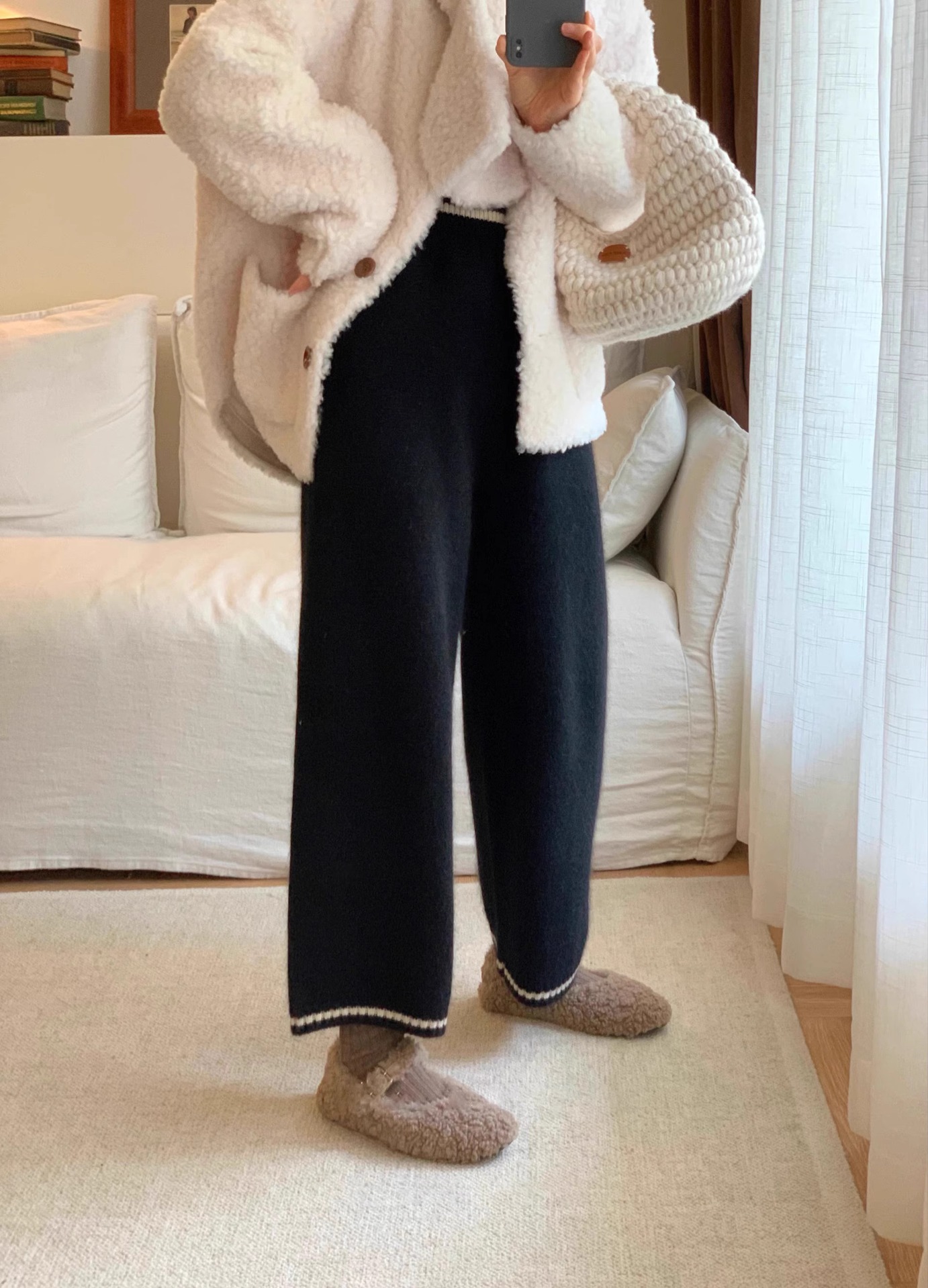 Wool knitted pants gray pants women's 2024 new autumn and winter small nine-point wide-leg pants grandma pants wool pants