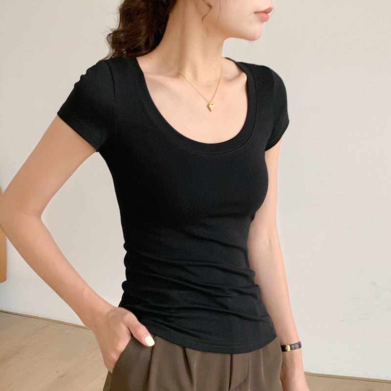 优质纯棉T恤女短袖修身圆领性感紧身2026新款夏装上衣纯色打底衫