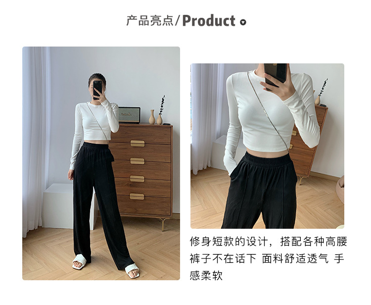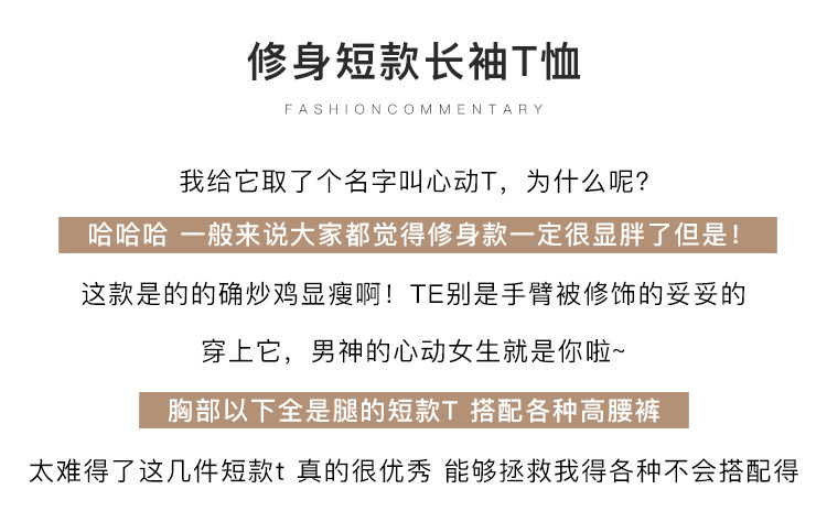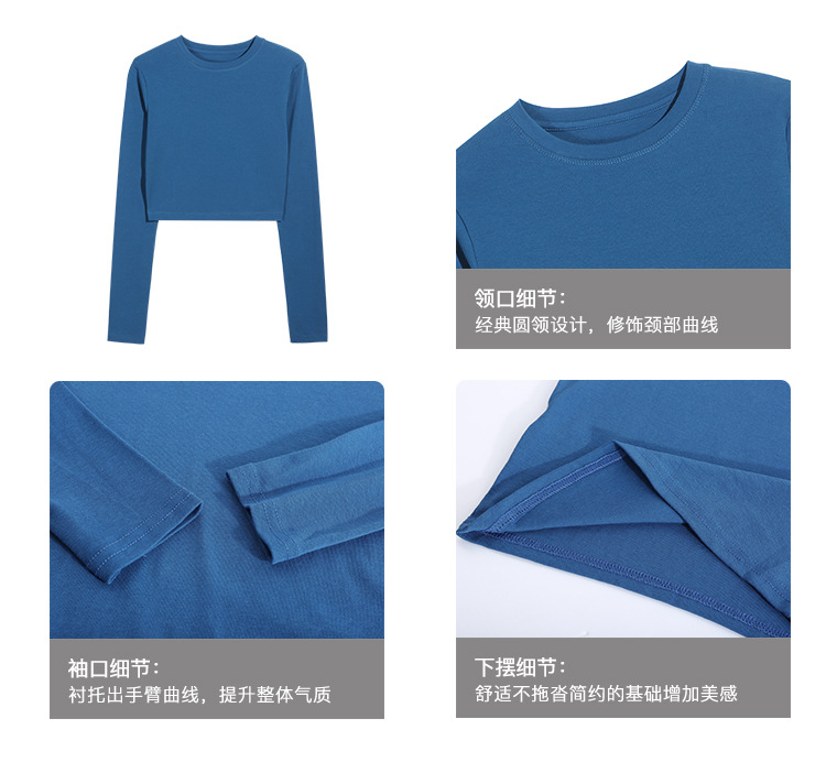 甄选纯棉高腰短款T恤女2026秋装新款内搭露脐长袖上衣修身打底衫