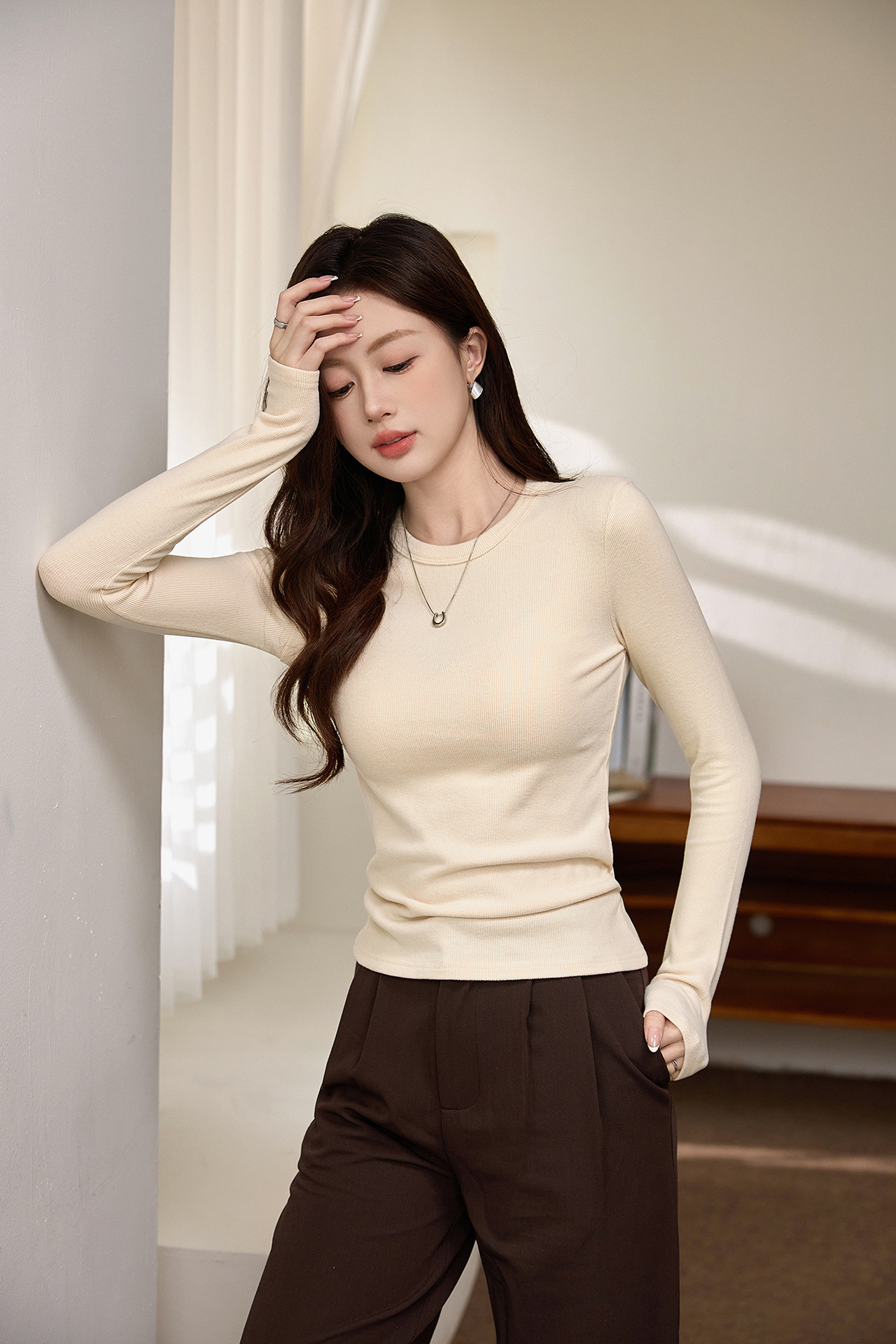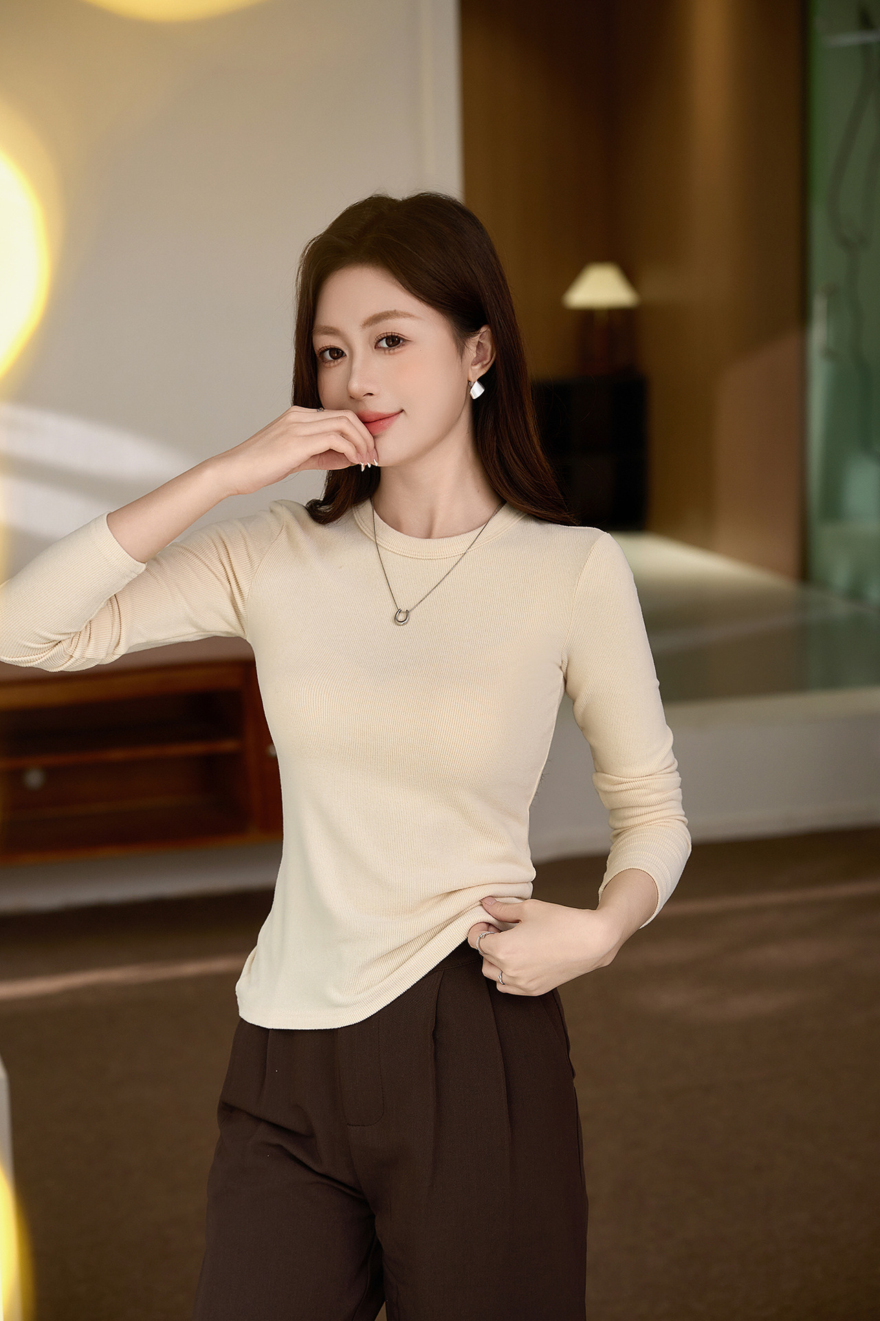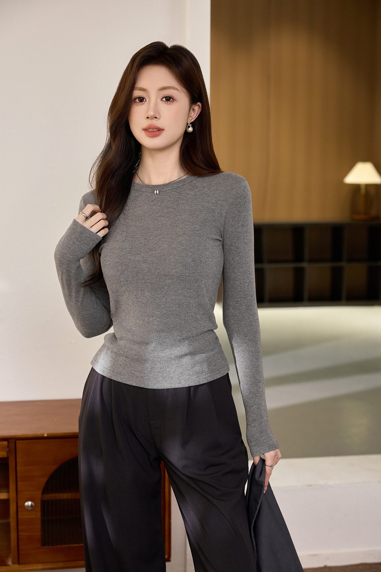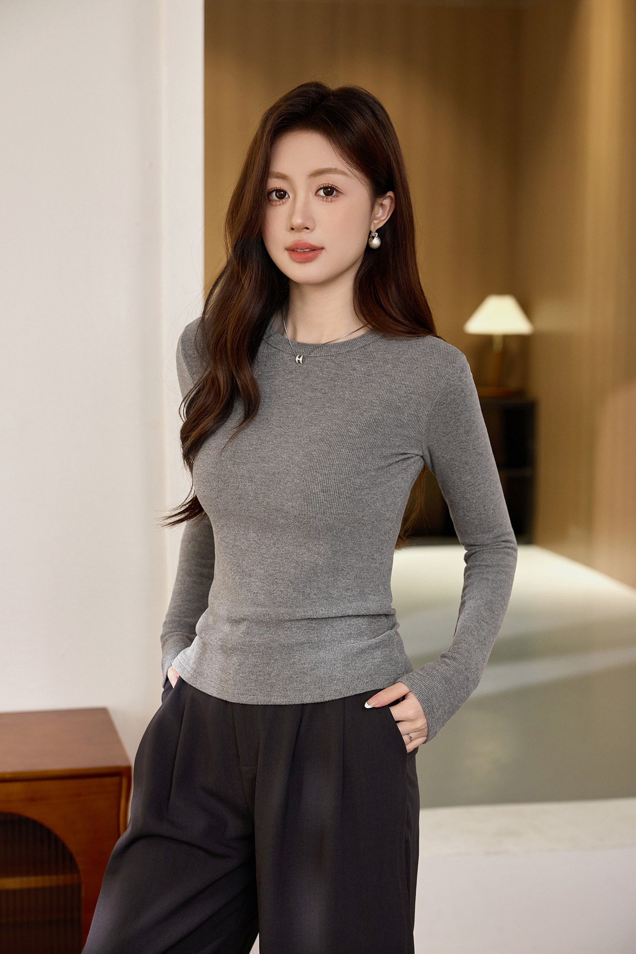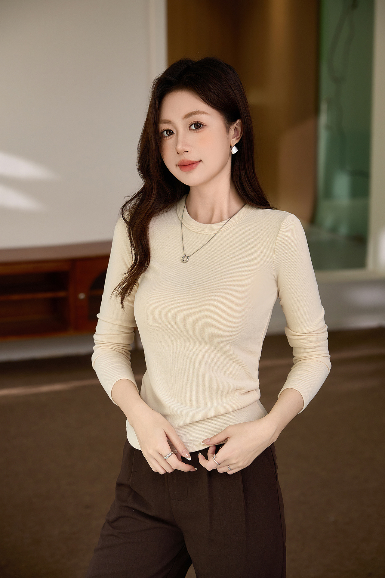#Double-sided grinding #Boutique mousse cashmere soft waxy T-shirt women's long-sleeved 2026 autumn and winter new inner bottoming shirt