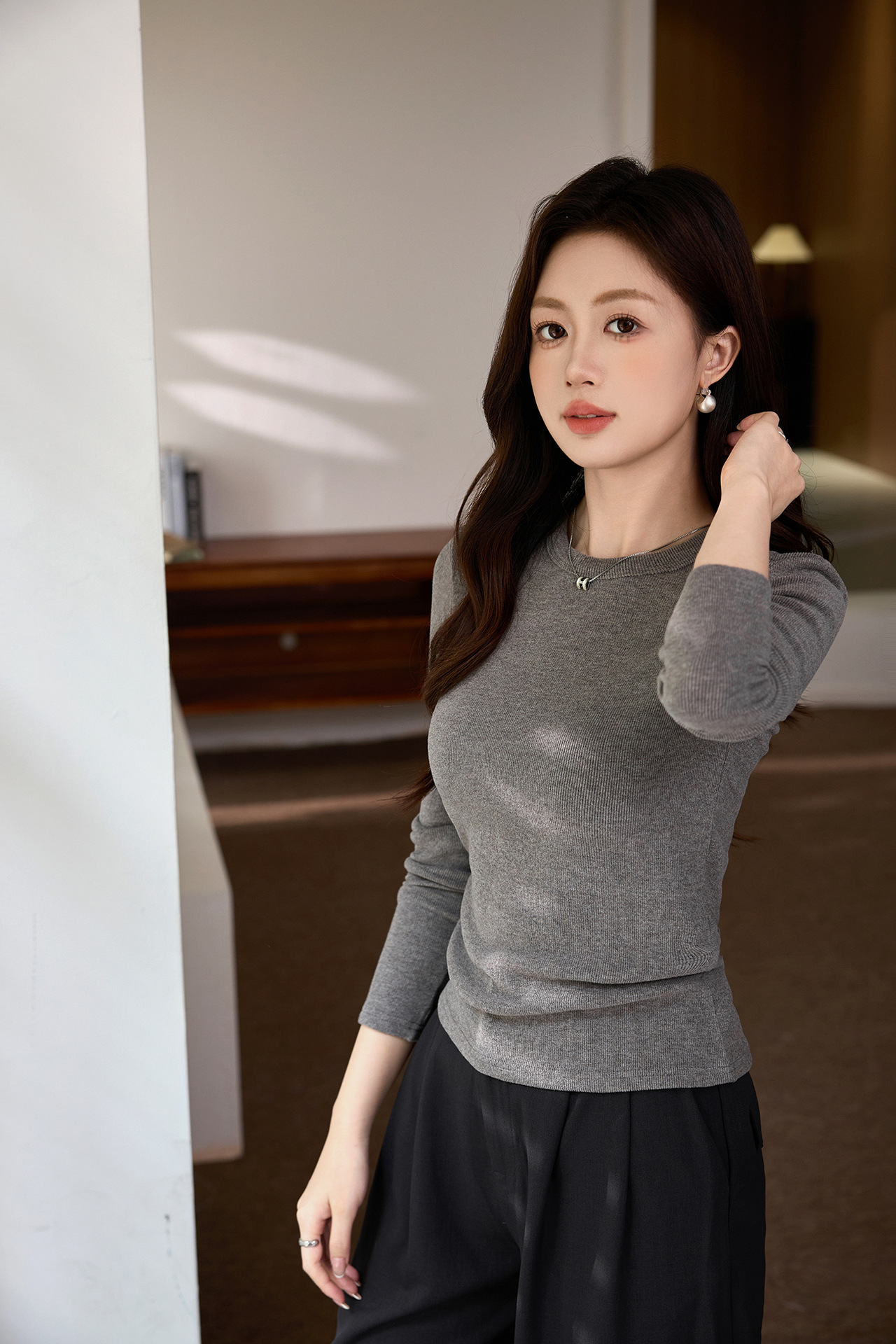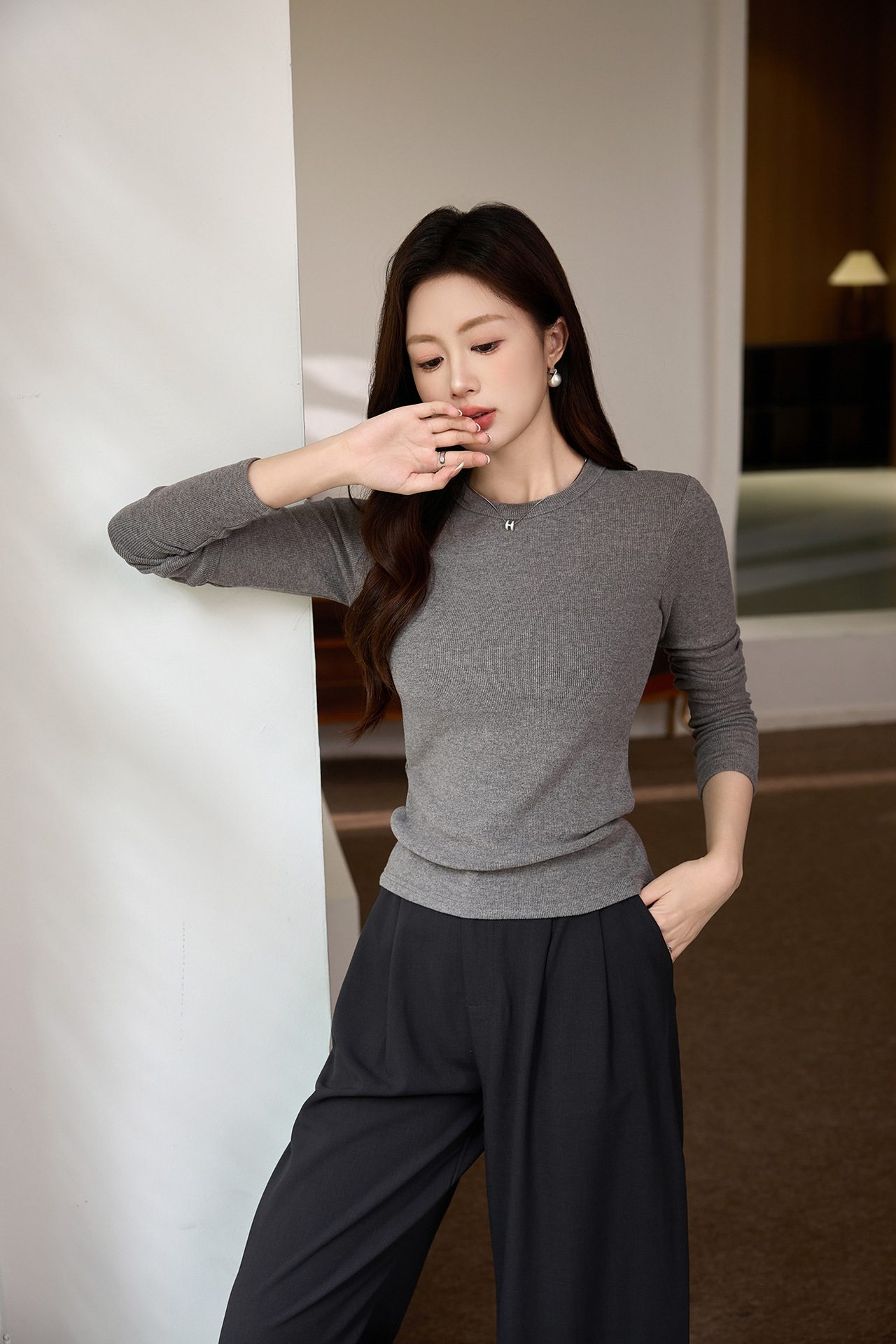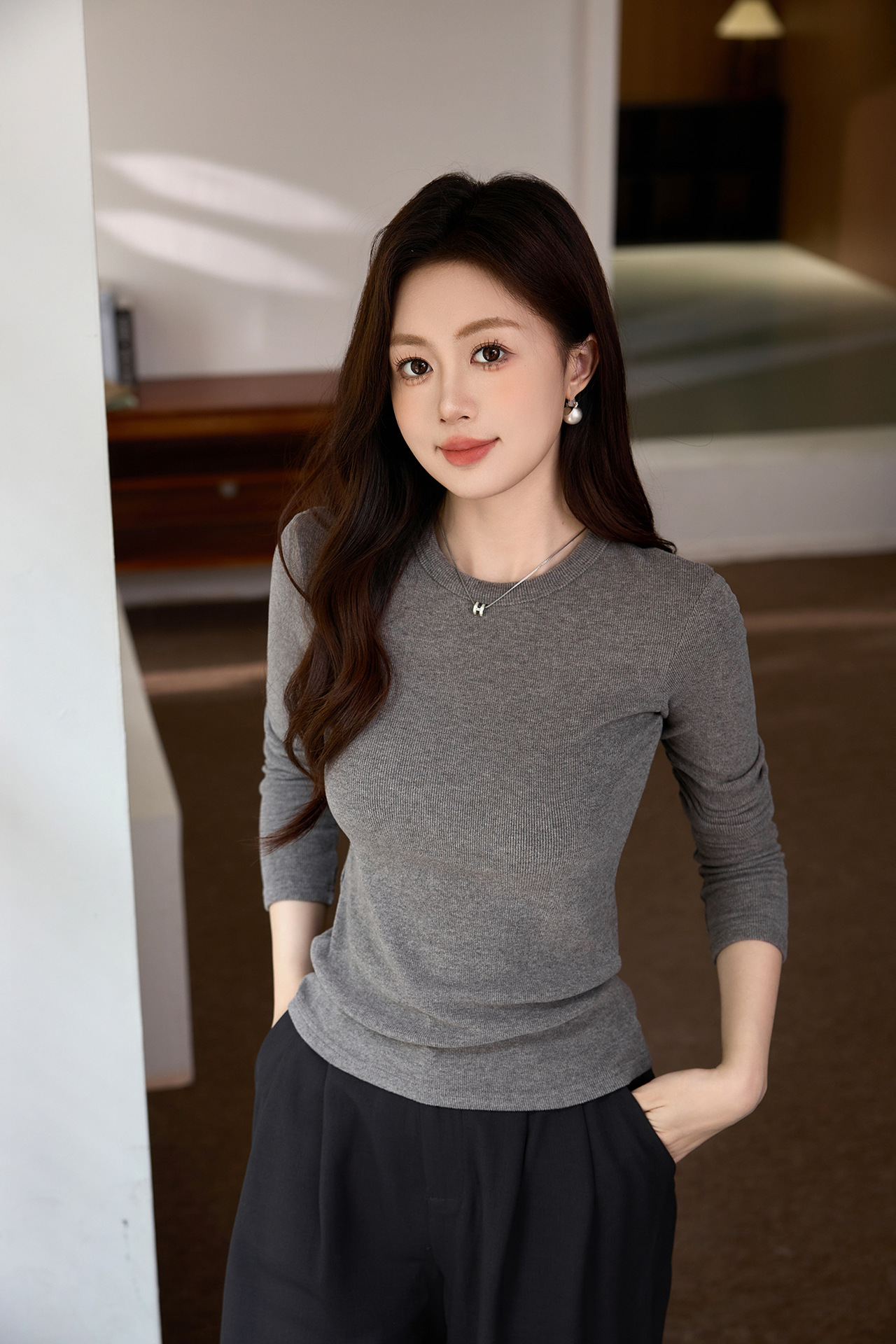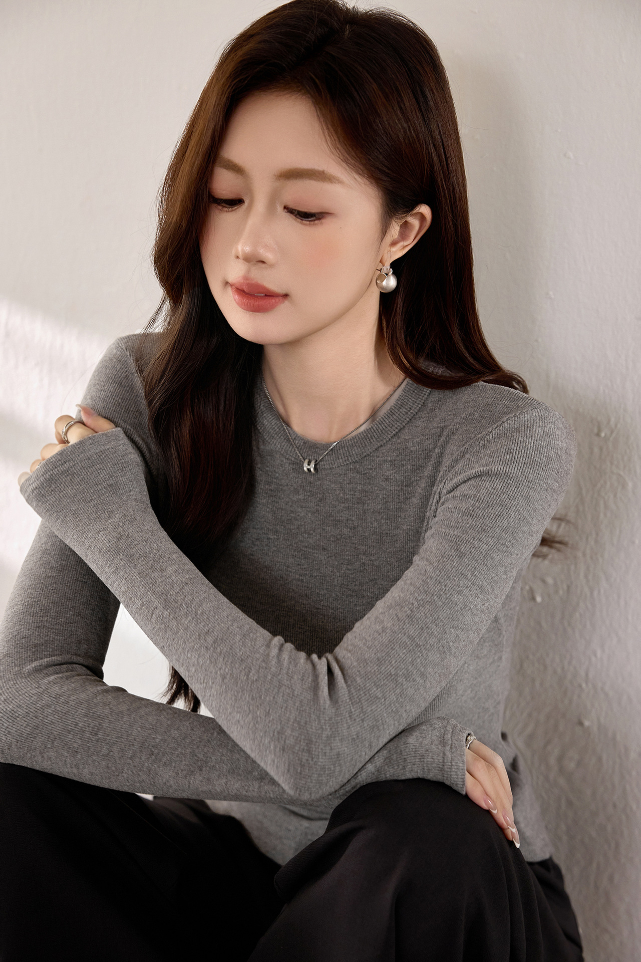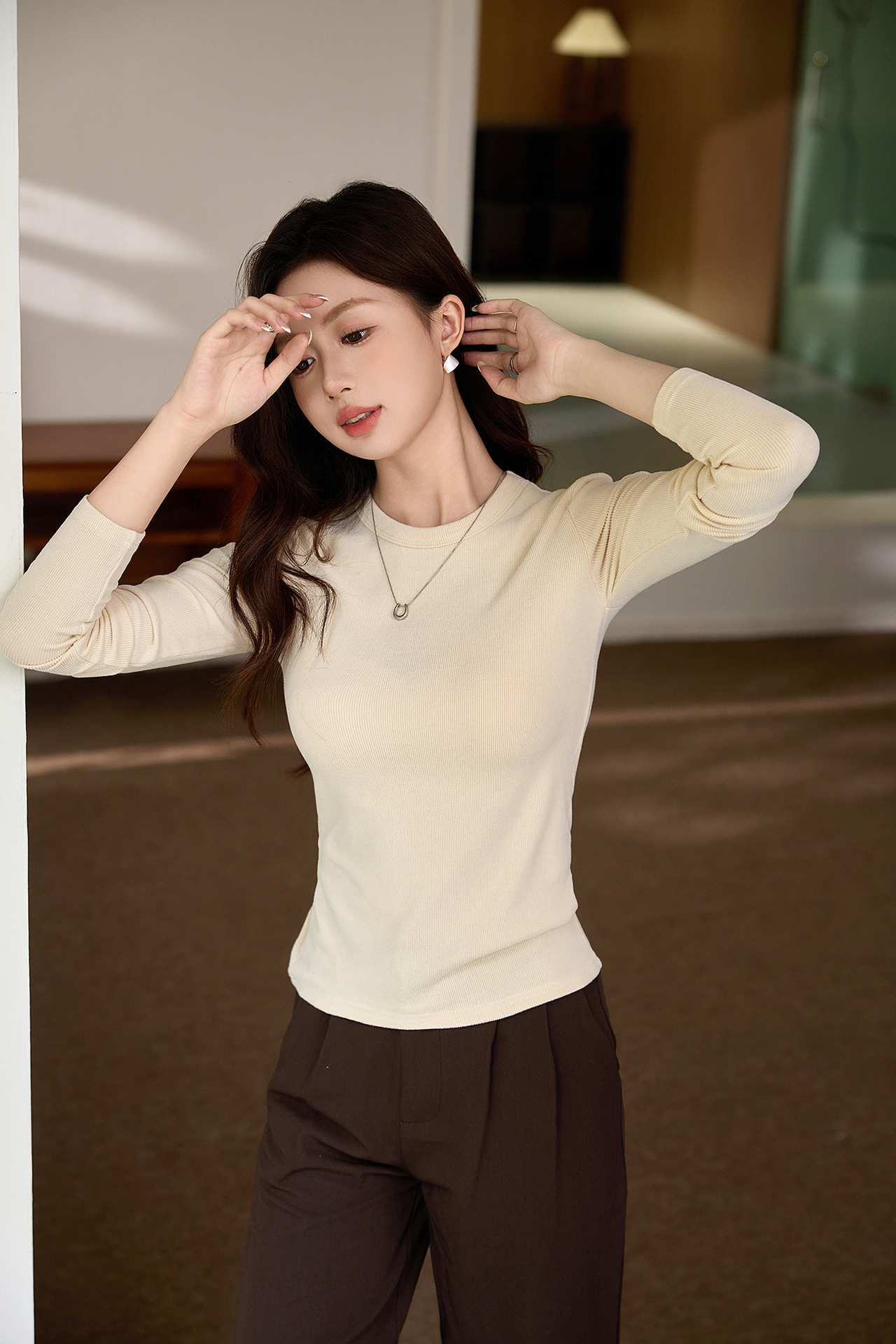 #Double-sided grinding #Boutique mousse cashmere soft waxy T-shirt women's long-sleeved 2026 autumn and winter new inner bottoming shirt