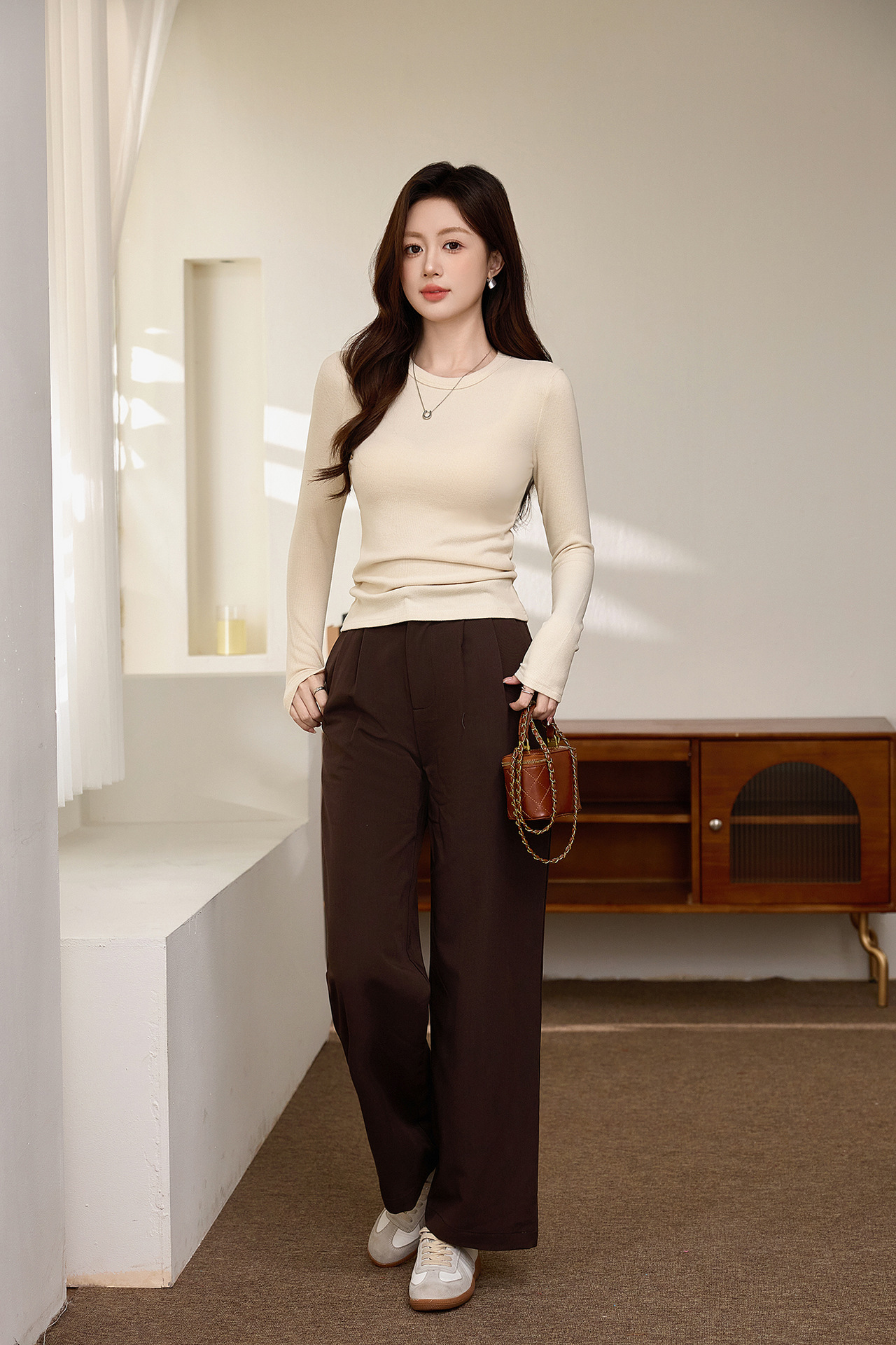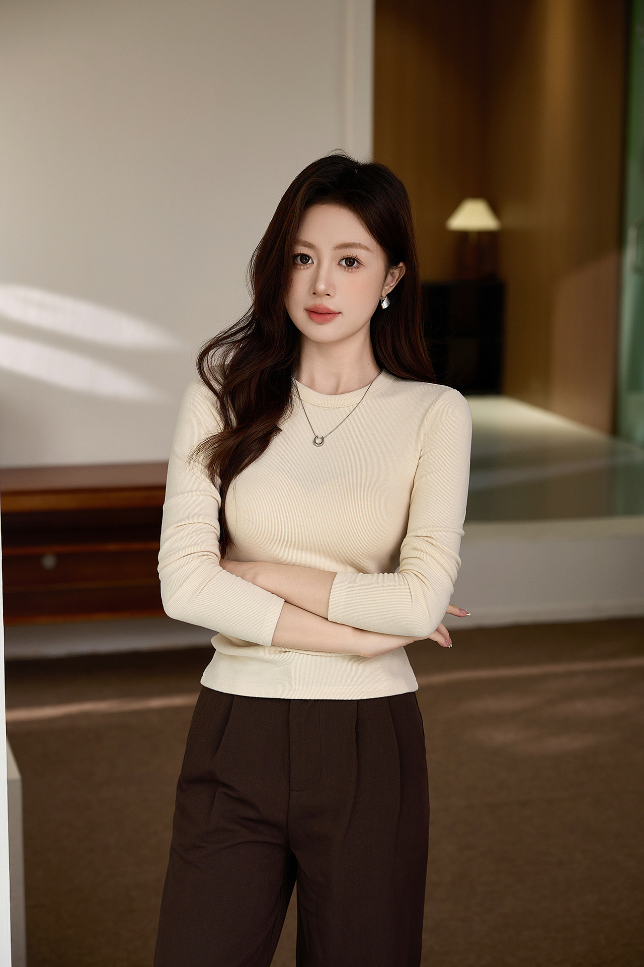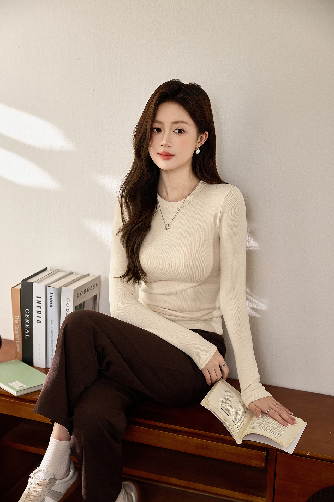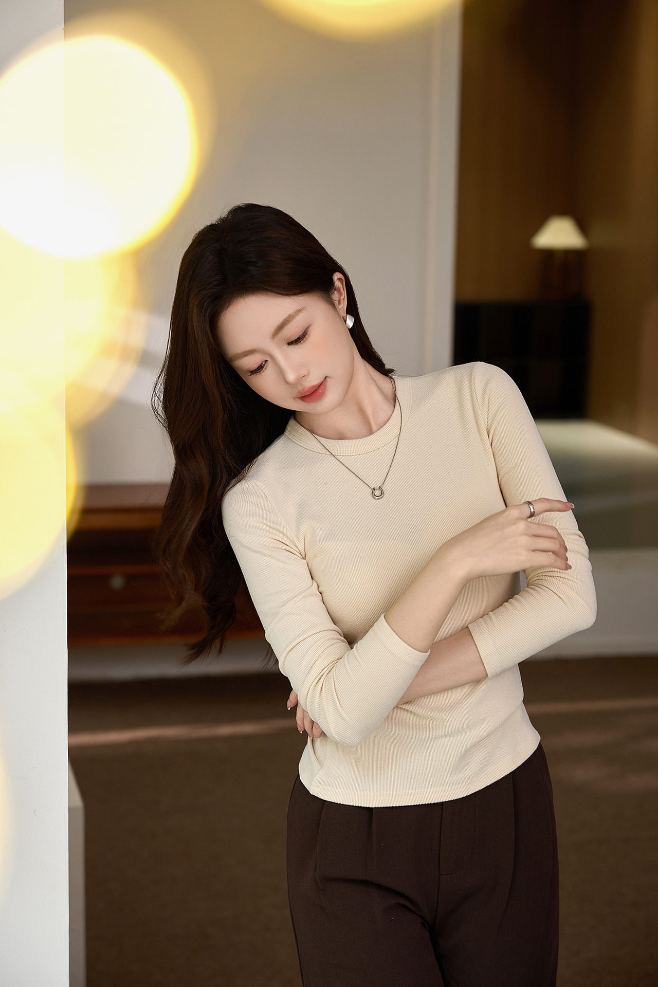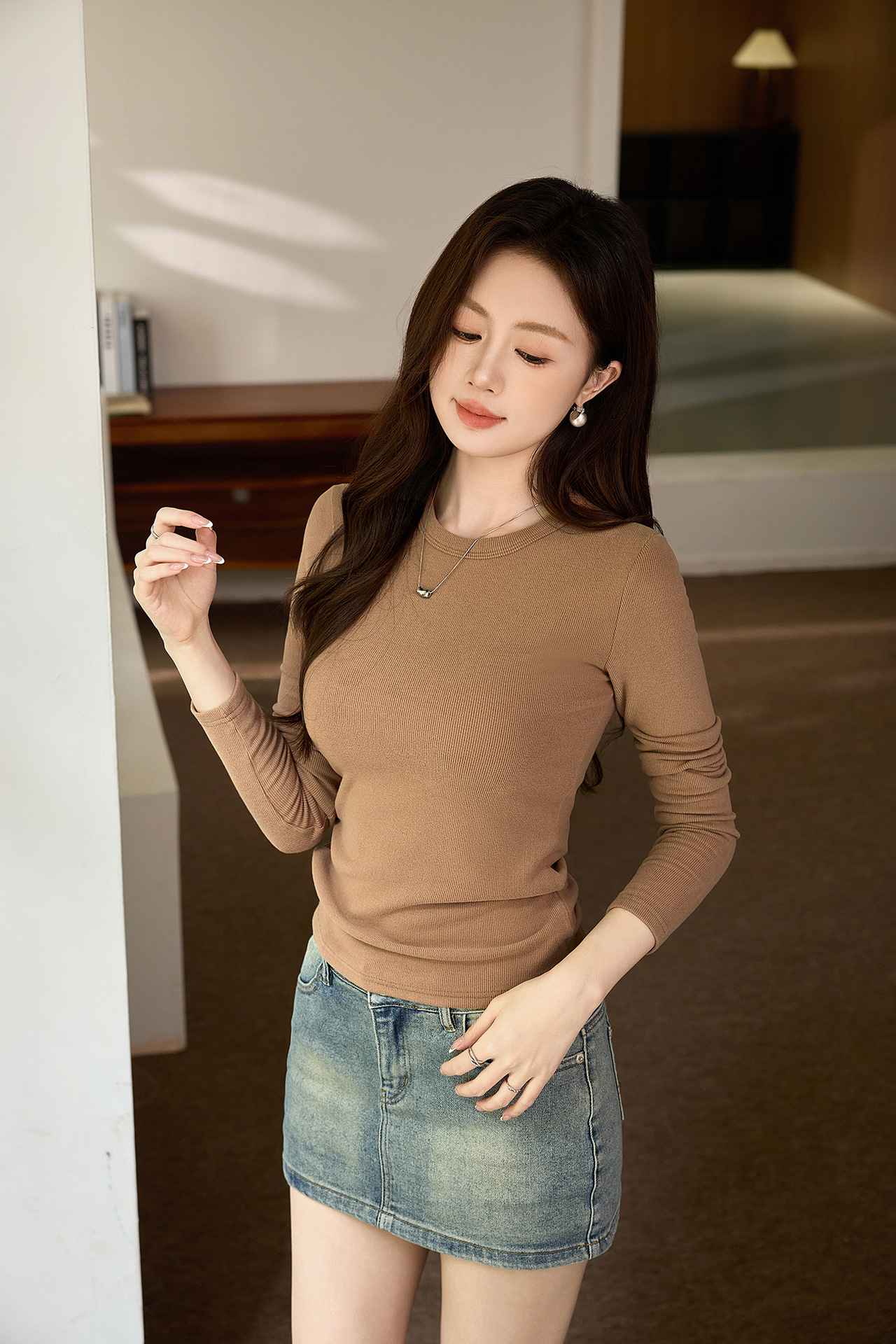 #Double-sided grinding #Boutique mousse cashmere soft waxy T-shirt women's long-sleeved 2026 autumn and winter new inner bottoming shirt