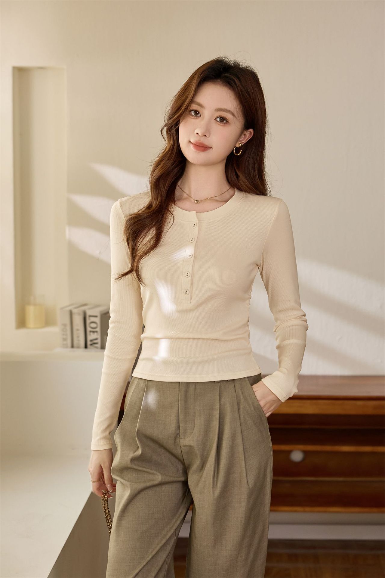 #Ingenuity screening product #Waist pleated Maillard chic cloth button-up long-sleeved T-shirt femininity pure cotton bottoming shirt