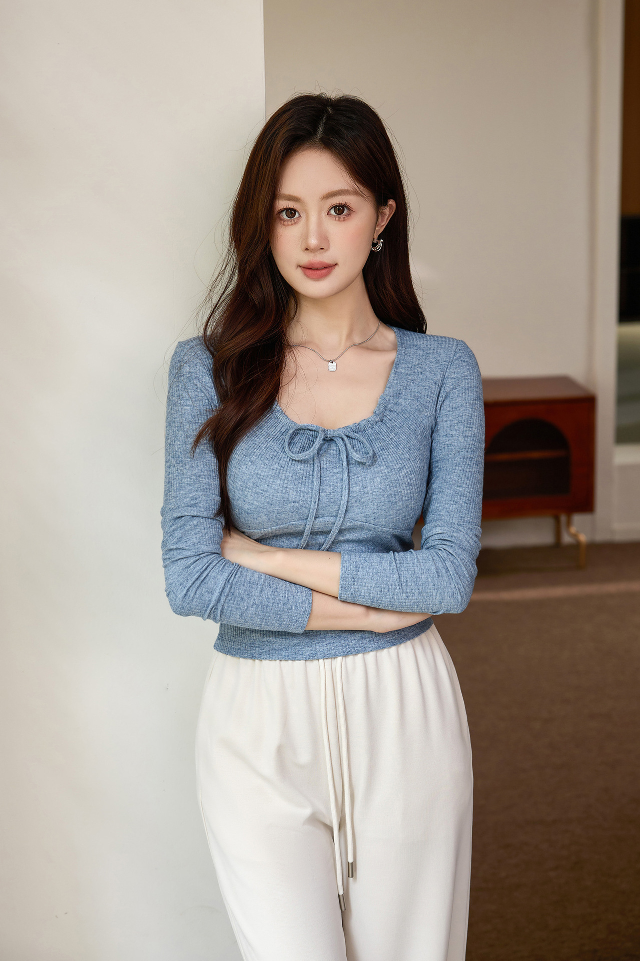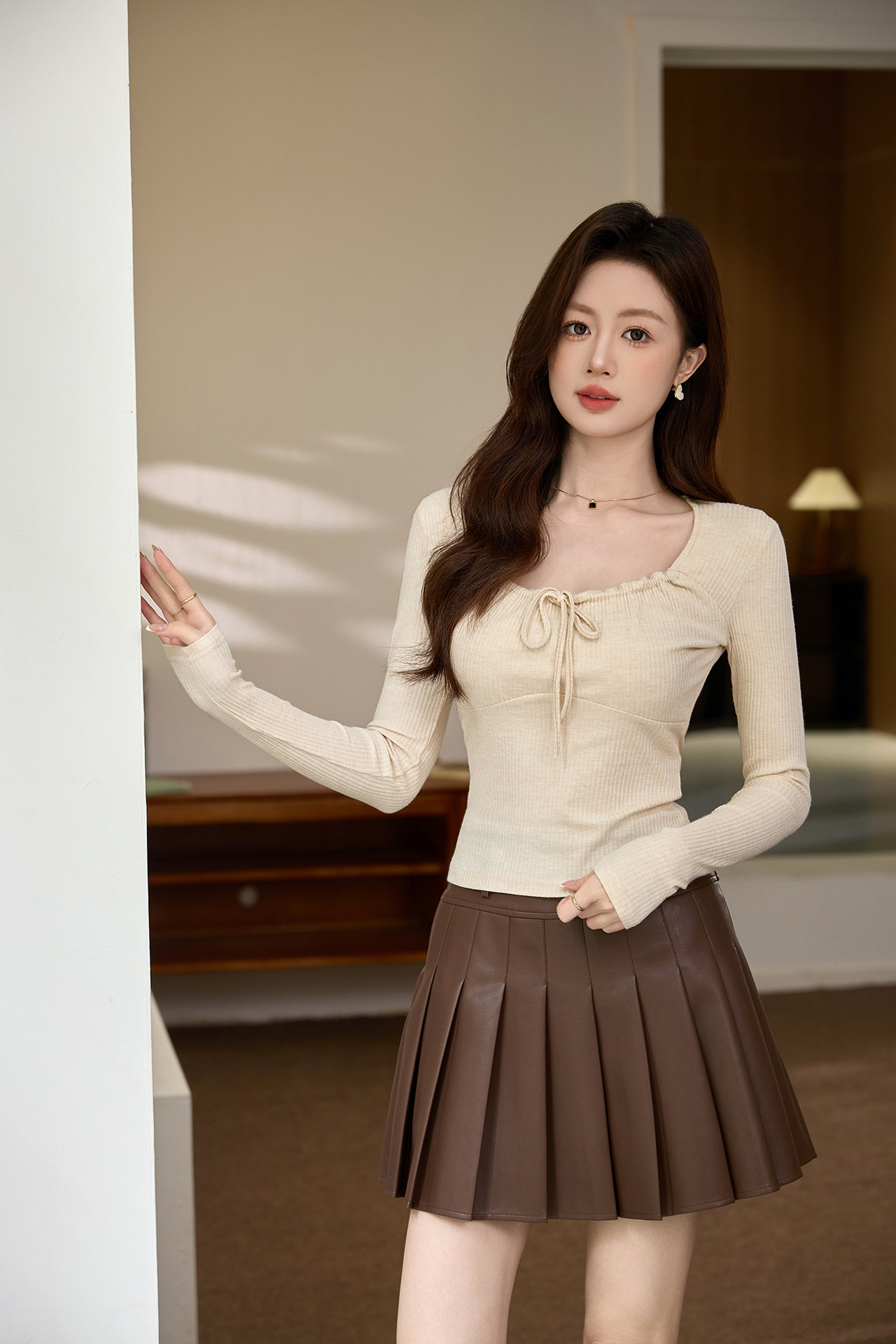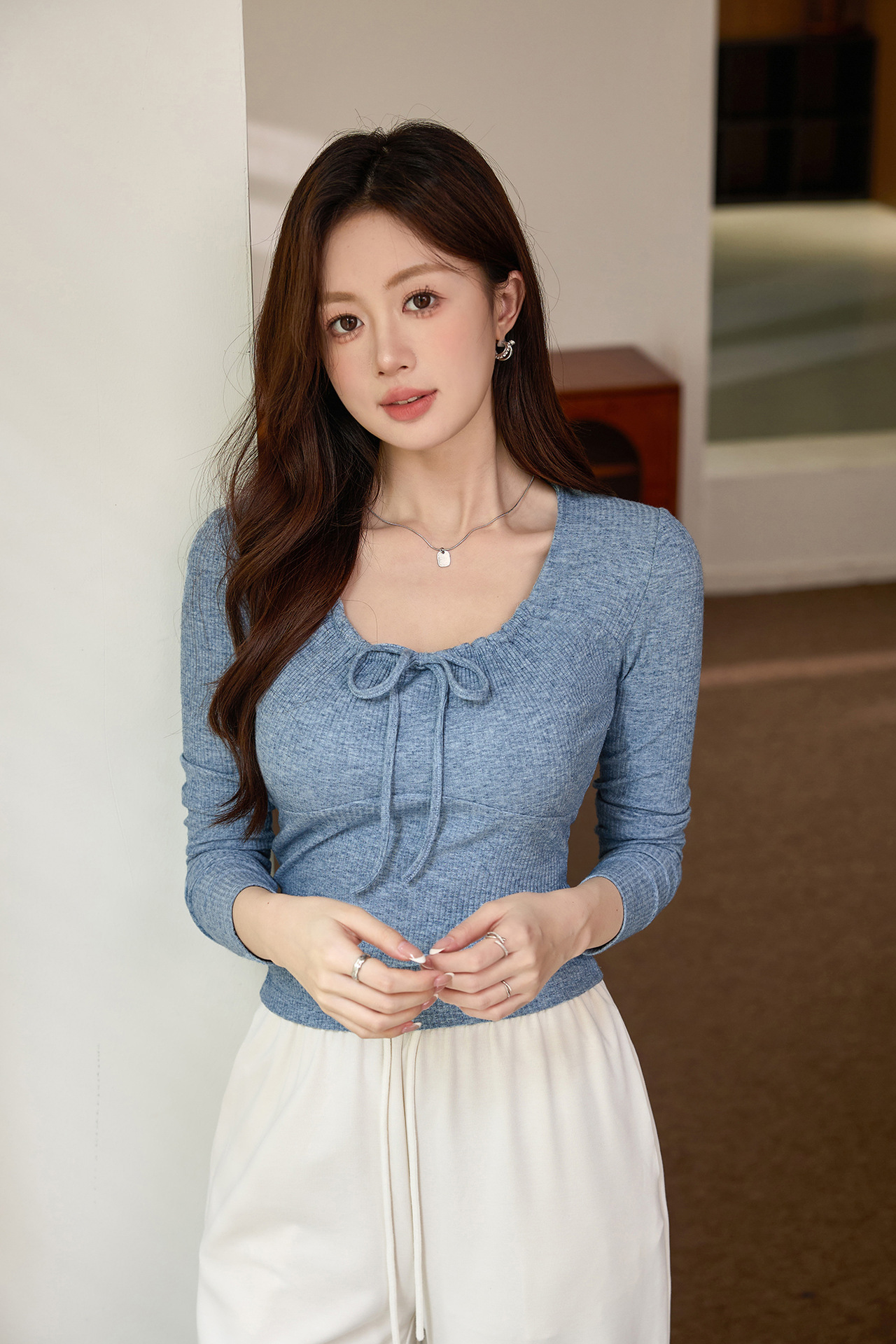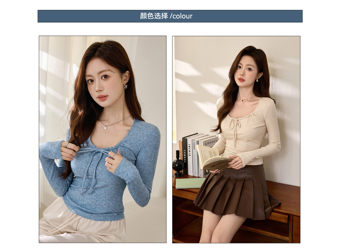 #Ingenuity Screening Products #Premium Design Sense Pleated Strap Cotton T-Shirt Women's Long Sleeve 2026 Autumn Spice Girls Sexy Top