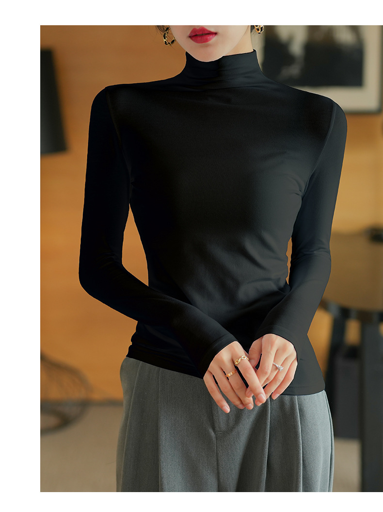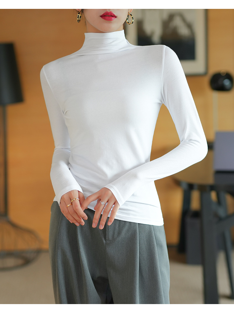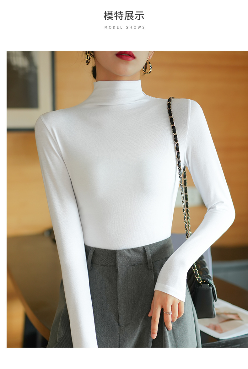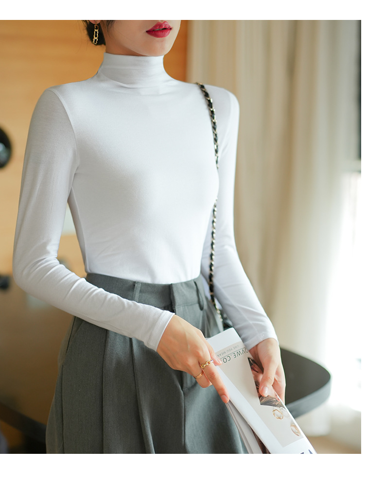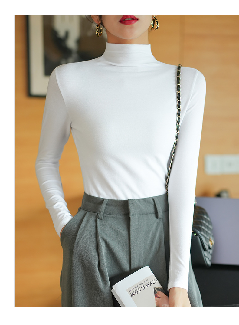 【】Pure cotton slim collar, long-sleeved T-shirt base shirt, women's spring and autumn underwear, basic top, high-temperature setting