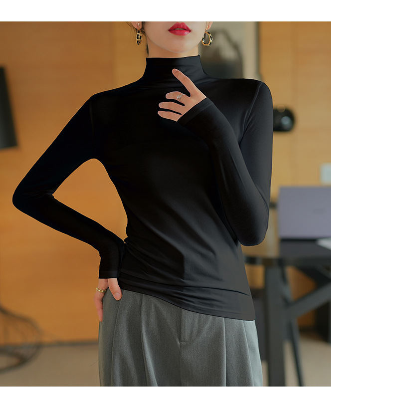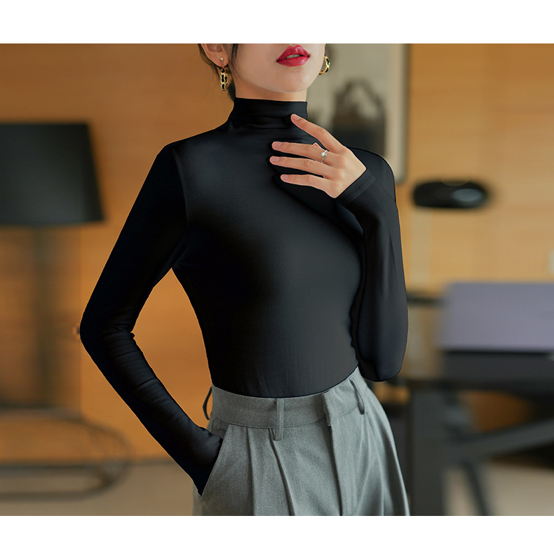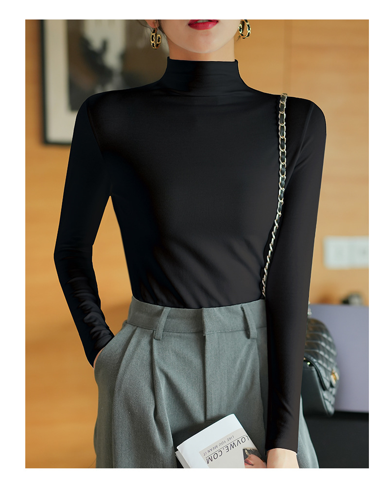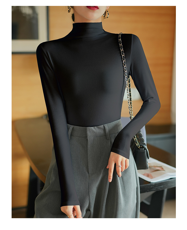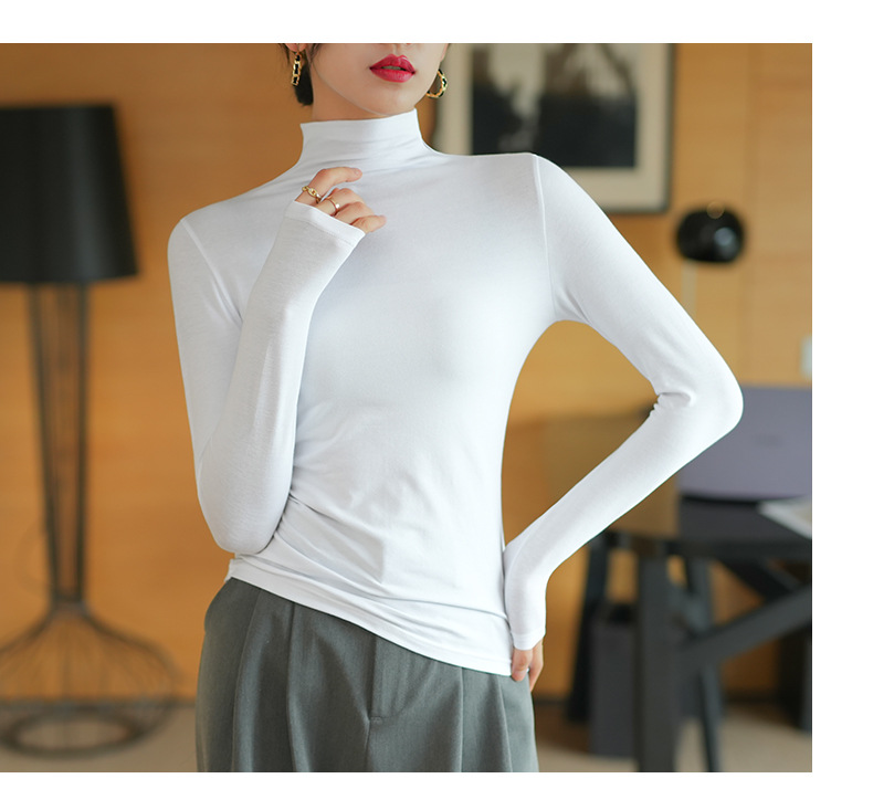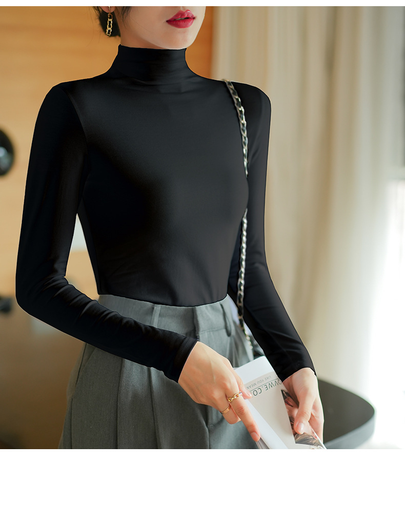 【】Pure cotton slim collar, long-sleeved T-shirt base shirt, women's spring and autumn underwear, basic top, high-temperature setting